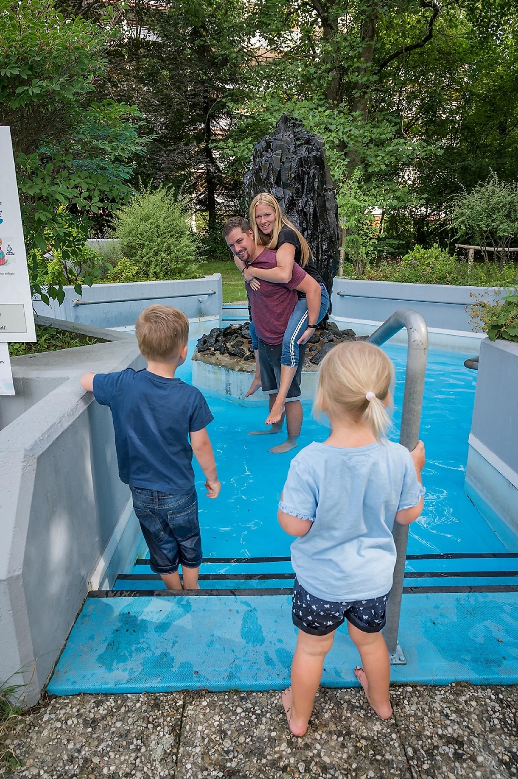 Die mit Fördergeldern des Förderaufrufs LEADER-Ansatz „Förderung von Kleinstprojekten“ bezuschusste Anlage fügt sich harmonisch in den Park und die bestehende Kneipp-Anlage ein. Das Barfußlaufen auf abwechslungsreichen Materialien der Natur aktiviert die Fußreflexzonen, macht die Gelenke beweglich und kräftigt die Muskeln.In die Planung und an der Umsetzung des Projektes waren außer den Gemeindearbeitern auch engagierte Ehlscheider*innen eingebunden und beteiligt.