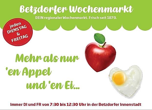 Jeden Dienstag und Freitag findet der Betzdorfer Wochenmarkt von 7:00 bis 12:30 Uhr statt – und das bereits seit dem Jahr 1879. Der größte Wochenmarkt im nördlichen Rheinland-Pfalz ist Anziehungspunkt für jung und alt zugleich und blickt auf eine lange Tradition zurück.