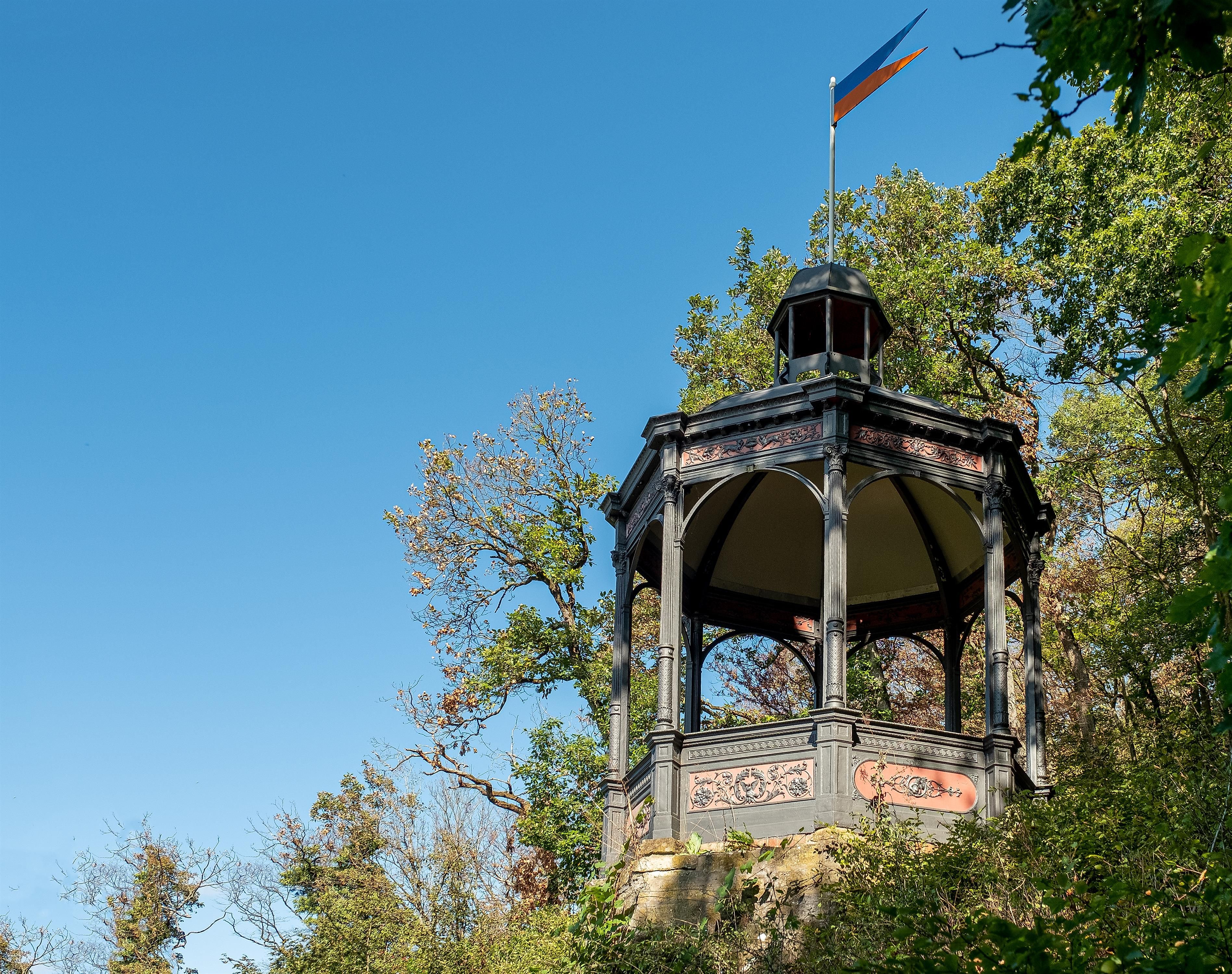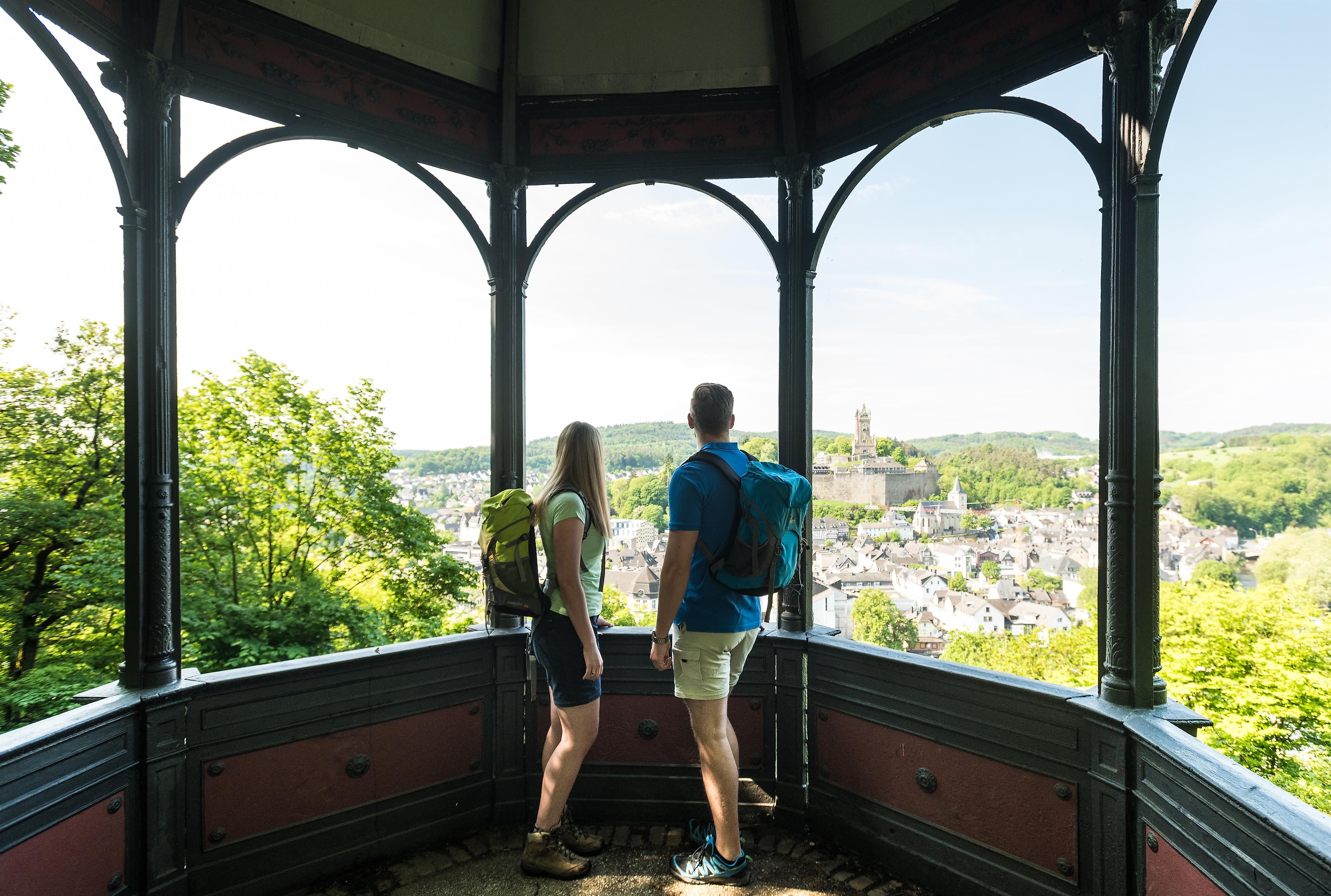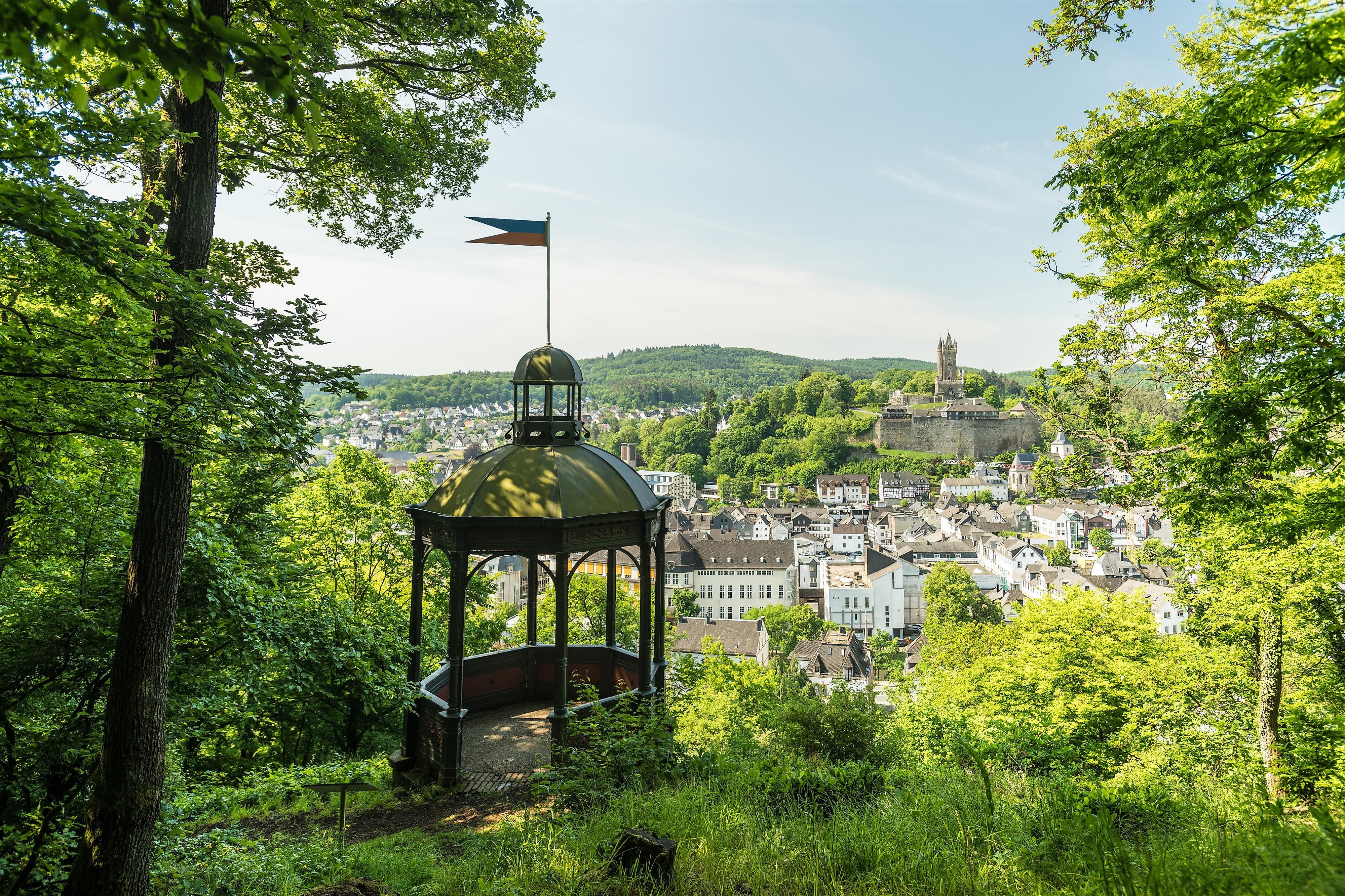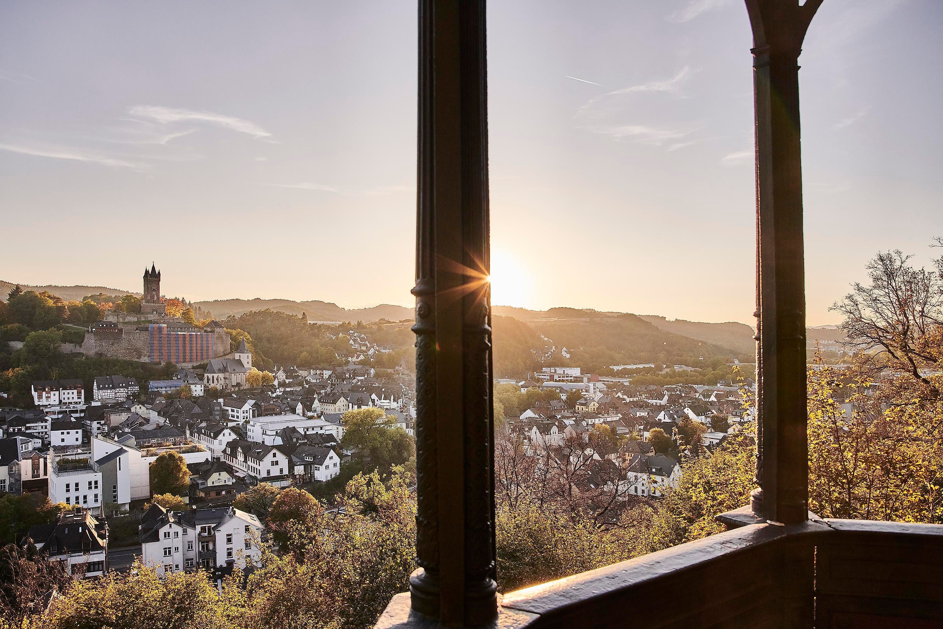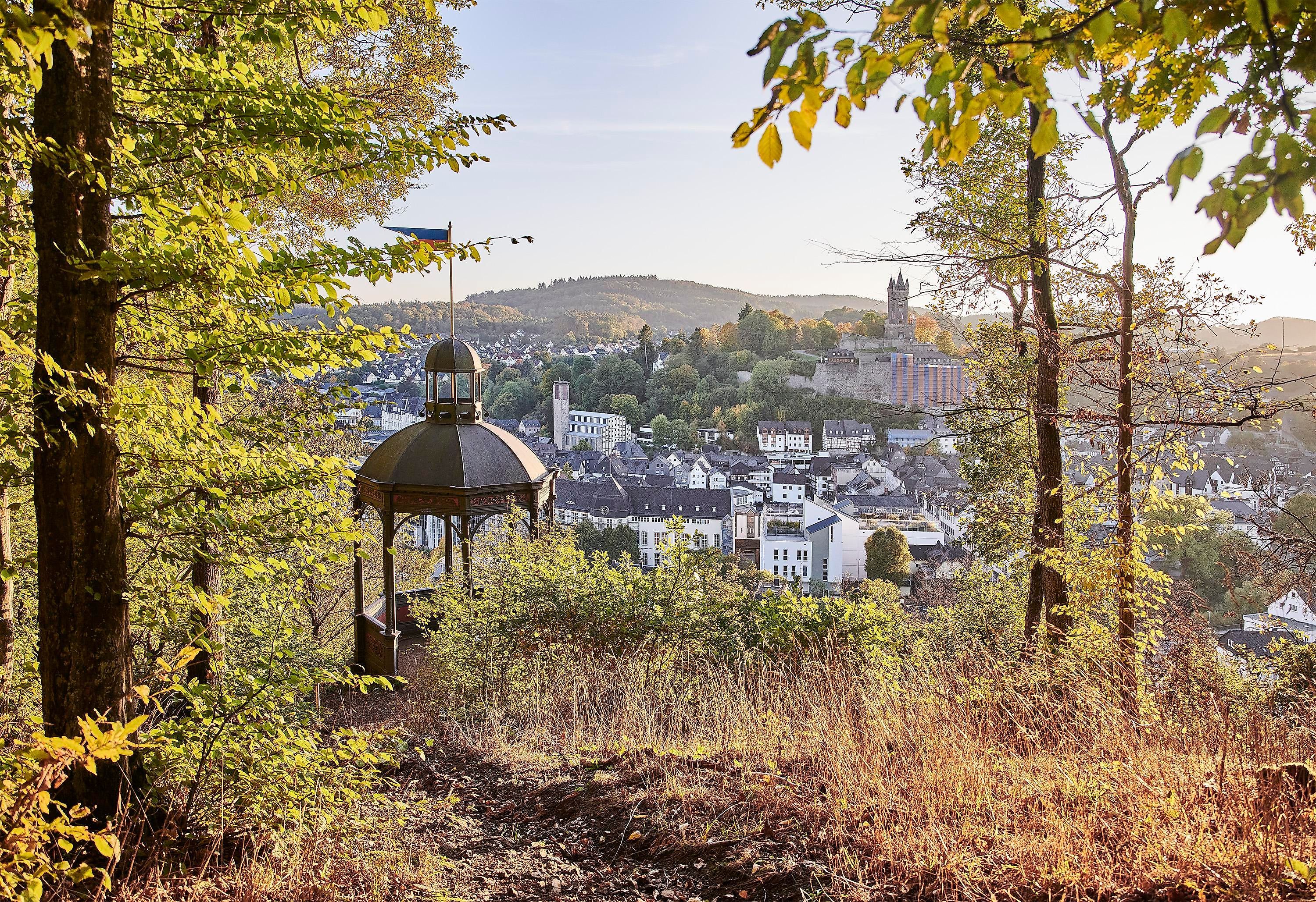Der Aussichtspunkt auf dem alten Weinberg bietet einen guten Blick auf die Dillenburger Altstadt und den Schlossberg.