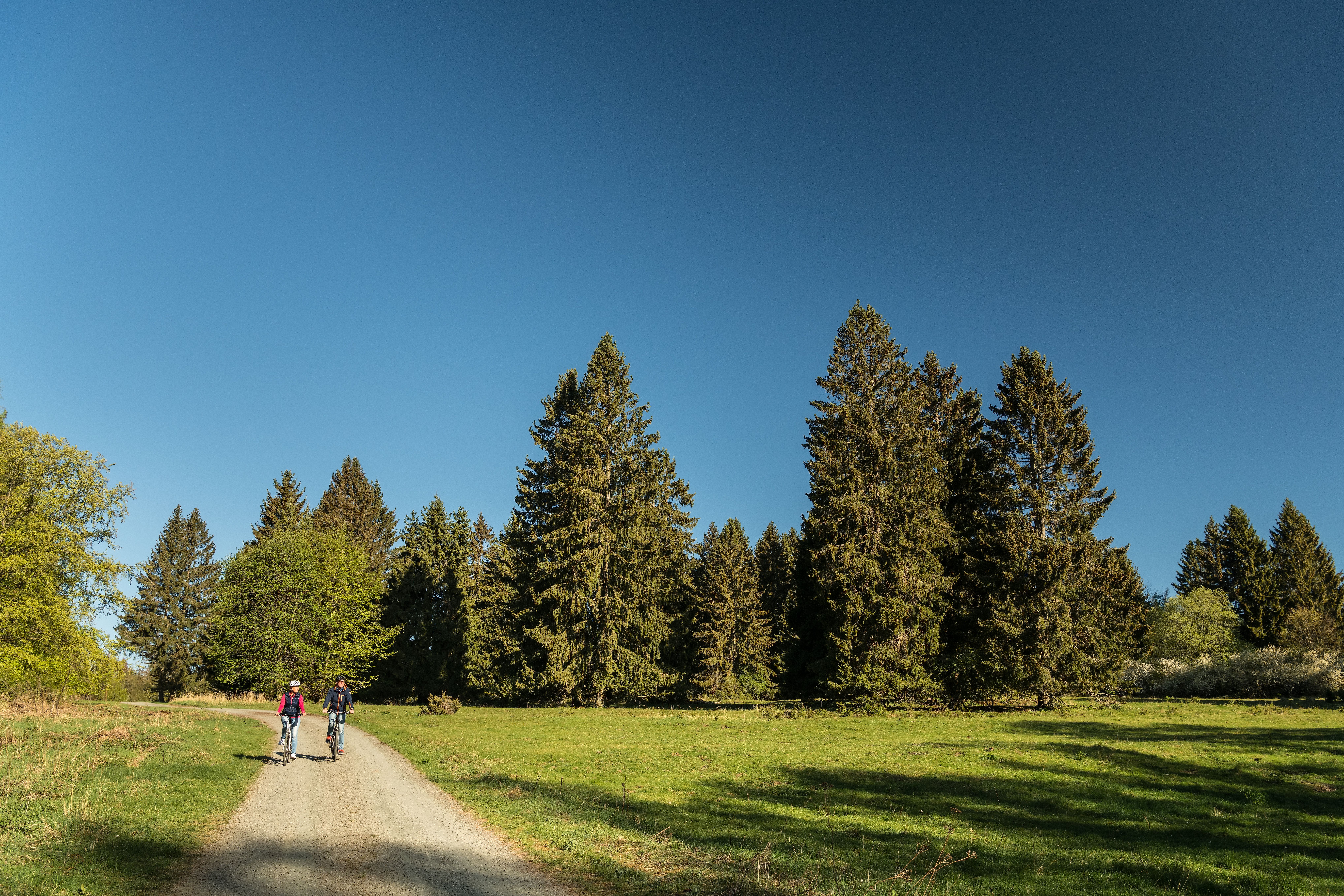Ich starte östlich vom Oberroder Knoten bei der Wetzlarer Hütte Richtung Süden. Es geht vorbei an der L 3046 in einer scharfen Kehre nach links. Im Wald fahre ich gleich wieder rechts und ein Stück weiter erneut nach links. Im Zickzack streife ich Arborn und erreiche dahinter Nenderoth. Der Weg führt mich an mehreren Mühlen vorbei nach Obershausen und direkt weiter nach Niedershausen. Weiter geht es ein Stück nach Süden. So erreiche ich mein Ziel Löhnberg und den Lahnradweg. Die Route ist knapp 15 Kilometer lang, ich veranschlage dafür ohne Pausen eine gute Stunde. Die Strecke ist für Senioren und Kinder ideal, denn sie führt tendenziell abwärts und bietet mehrere Rastplätze; unter anderem im Kallenbachtal, einem Fauna-Flora-Habitat. Unmittelbar vor Arborn stehen der „dicke Baam“ und die Erinnerungsstätte Heiligkreuzkirche und hier liegt ein großzügiger Rastplatz mit schöner Aussicht. Unterwegs kann ich mich außerdem an drei sanierten Brunnenanlagen erfrischen.