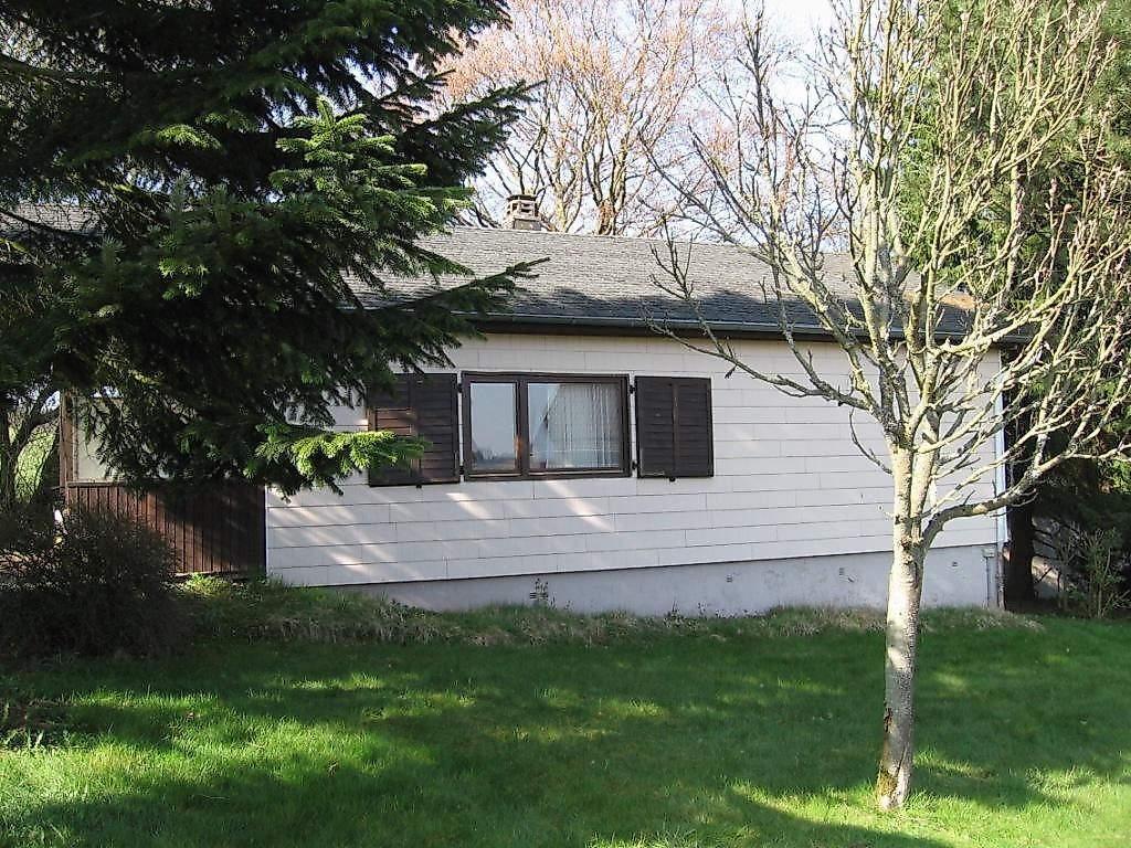 Gemütliches Ferienhaus, freistehend auf 700 qm Grundstück mit ca. 65 qm Wohnfläche, überdachter Terrasse m. Gartenmöbeln und großem geschütztem Garten. Großes Schlafzimmer mit Doppelbett, kleines Schlafzimmer mit Einzelbett. Wohnzimmer mit Schlafcouch, Sitz- und Essecke, Sat-TV, CD-und DVD-Player. Komplett eingerichtete Küche, Bad/Dusche/WC. Grillplatz. Pkw-Stellplätze vorhanden. Durch die Lage am Ortsrand findet man Wiesen und Wälder direkt vor der Haustür - beste Voraussetzungen für erholsame Urlaubstage!