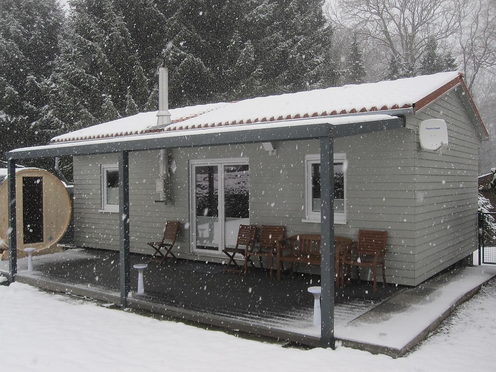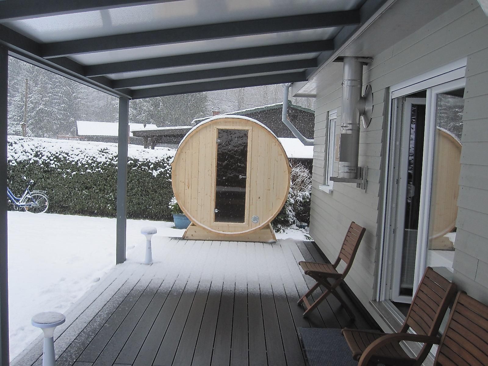 Ausstattung außen:teilüberdachte, möblierte Südterrasse mit Gartenmöbeln,Terrassensauna für 2 Personen und Wiese