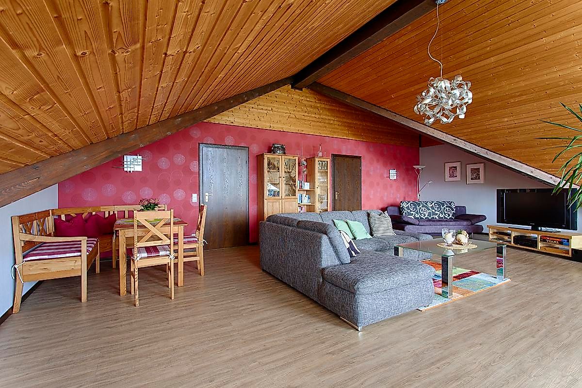 Unsere Ferienwohnung "Am Klosterweg" ist für 4 Personen vorgesehen - 90 qm groß - herrlicher Panoramablick in die Eifel.2 Schlafzimmer, Studio, Küche, Badezimmer