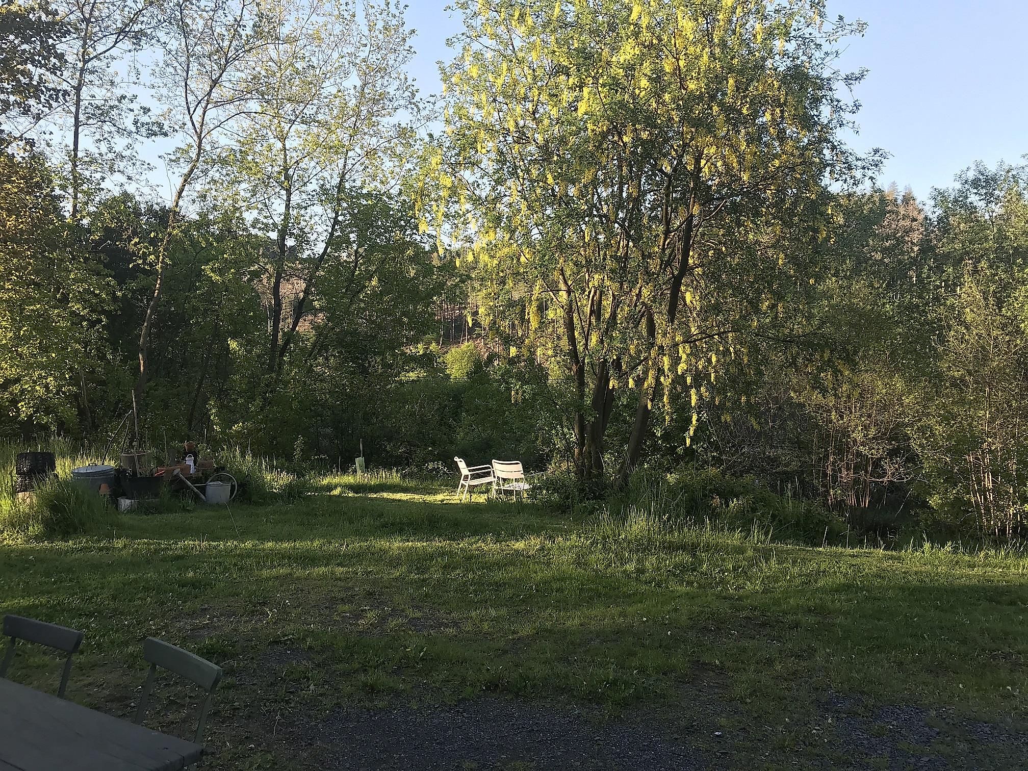 In einem kleinen Dorf ohne Durchgangsverkehr, umgeben von ziemlich viel Natur und Ruhe, liegt unser Haus, „Die traute 33“.Nachts hört man hier oft den Kauz rufen und mit etwas Glück sieht man in der Dämmerung den Fuchs durch den Garten schnüren. Es kann passieren, dass die Rehe sich an den Kräutern, die eigentlich für Euch Gäste angepflanzt wurden, bedienen…Direkt ans Haus schließen eine zugehörige Wiese und ein kleines „Wäldchen“ an, hier könnt Ihr versteckte Ruheplätze, inmitten von Bäumen, Sträuchern und duftenden Rankpflanzen finden.Wer einen kurzgemähten Rasen mit Blumenrabatten erwartet wird enttäuscht sein, hier darf fast alles wachsen wie es möchte und wird lediglich leicht im Zaum gehalten. Die Feuerschale und das dazugehörige Brennholz liegen für Euch bereit.Wanderer und auch Radfahrer können direkt am Haus starten, z. B. der WesterwaldSteig, aber auch kürzere Wander- und Rundwege führen durchs Tal und in die Höhen.Im 4km entfernten Städtchen Hachenburg kann man sich mit allen Artikeln des täglichen Lebensversorgen, verpaßt bitte auf keinen Fall, den wunderschönen, historischen Stadtkern mit Marktplatz anzuschauen.Die sehr nahe gelegene Westerwälder Seenplatte bietet Euch Möglichkeiten des Badens, Bootfahrens, „Drumherum Spazierens“, oder beobachtet doch einfach mal ungestört die Natur.