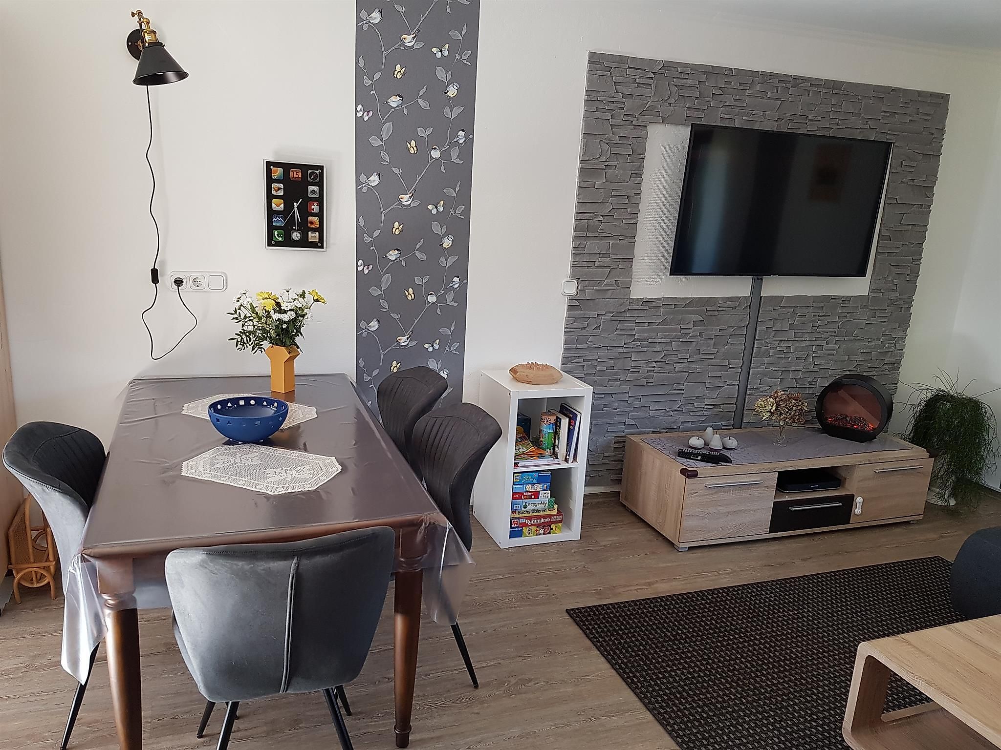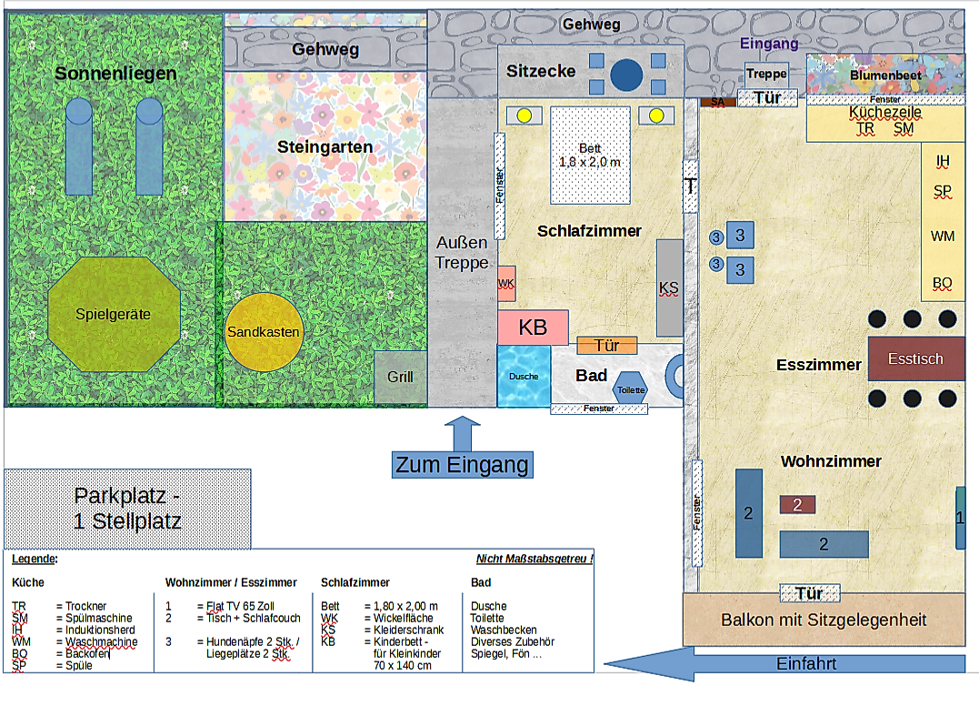 Des weiteren ist es möglich per Sky die aktuelle Bundesliga sowie verschiedene Filme, Dokus etc. zu sehen. (ein Bluray-Player ist ebenfalls vorhanden). Das Grundstück darf gerne ausgenutzt werden. Es besteht die Möglichkeit ihre Fahrräder oder Kinderwagen überdacht und abschließbar abzustellen