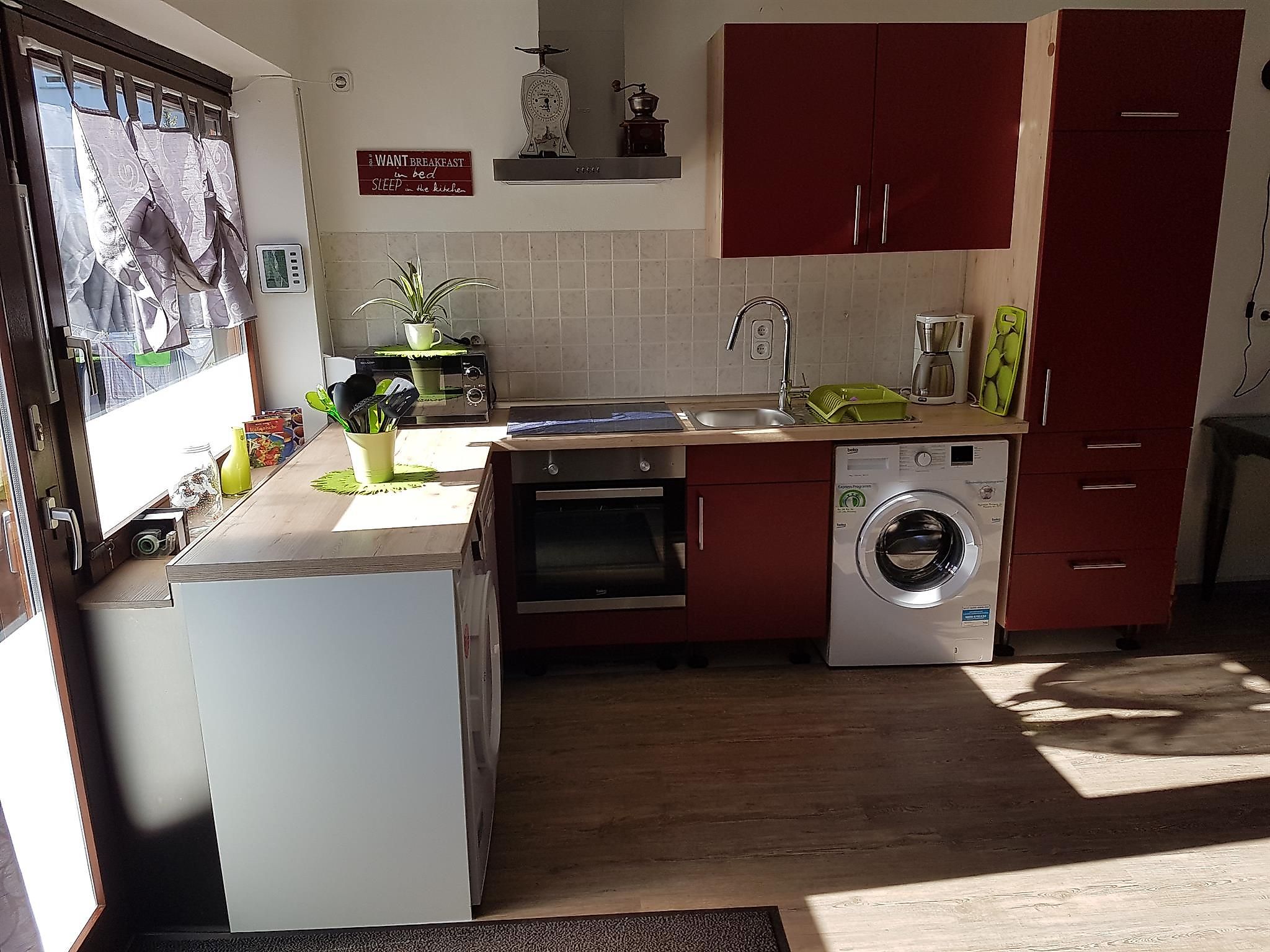 Da uns Familien und Hundefreundlichkeit wichtig ist, steht Ihnen eine eigene Waschmaschine, Spülmaschine sowie ein Trockner zur Verfügung. Zur Selbstversorgung wurde ein Herd mit Induktionskochfeld, eine Mikrowelle, sowie Toaster, Wasserkocher und Kaffeemaschine installiert.