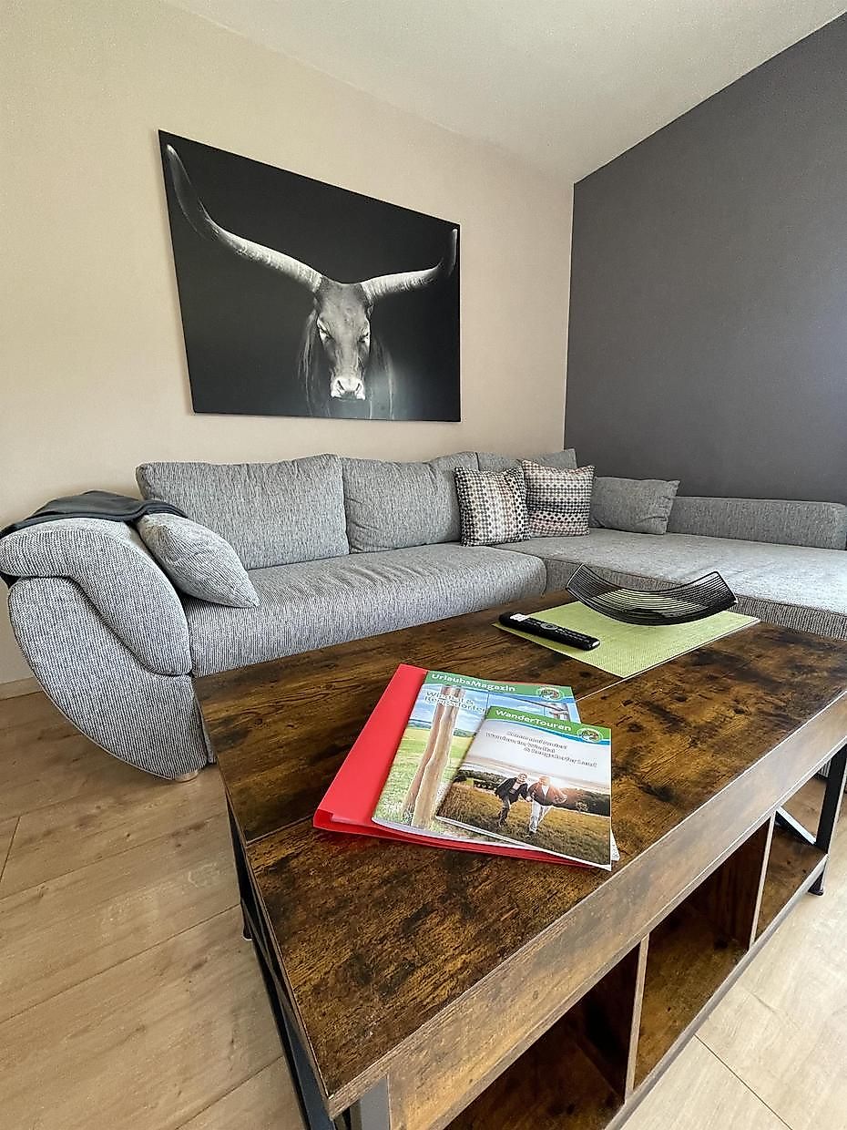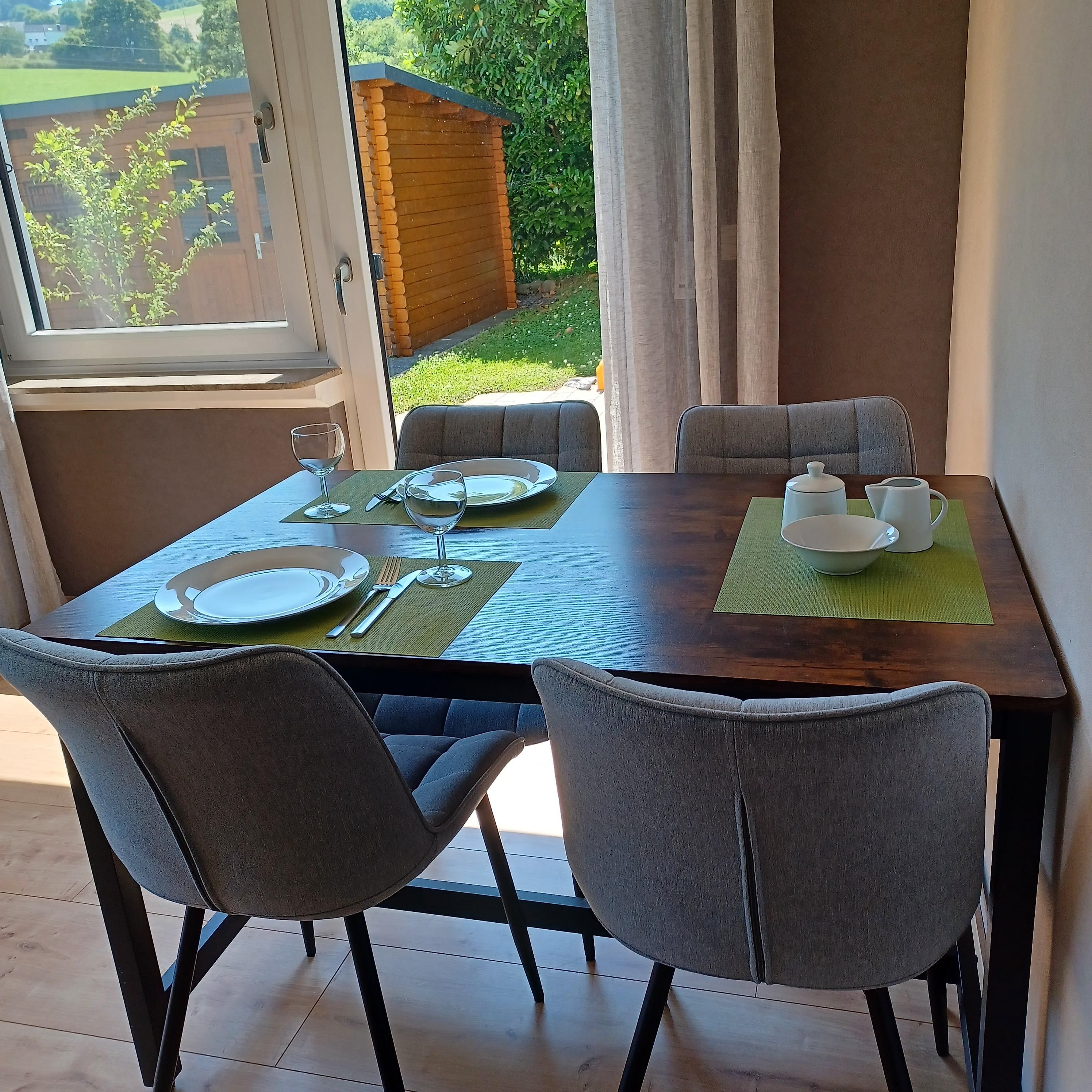 Unsere Ferienwohnung "Im Wiesenrain" liegt im ruhigen Ortsteil Reuschenbach oberhalb von Hausen an der Wied. Sie wurde im Jahr 2024 komplett neu eingerichtet. Unsere helle Ferienwohnung ist ca. 90 m² groß und hat einen seperaten Eingang sowie eine Terrasse mit schönem Ausblick. Die Räumlichkeiten bestehen aus 2 Schlafzimmern, Wohn-/Esszimmer, Küche, Bad und Gäste-WC. Biker und ein Hund sind herzlich Willkommen! In der Garage können Motorräder und Fahrräder sicher abgestellt werden. Ein PKW-Parkplatz befindet sich an der Straße vor dem Haus.