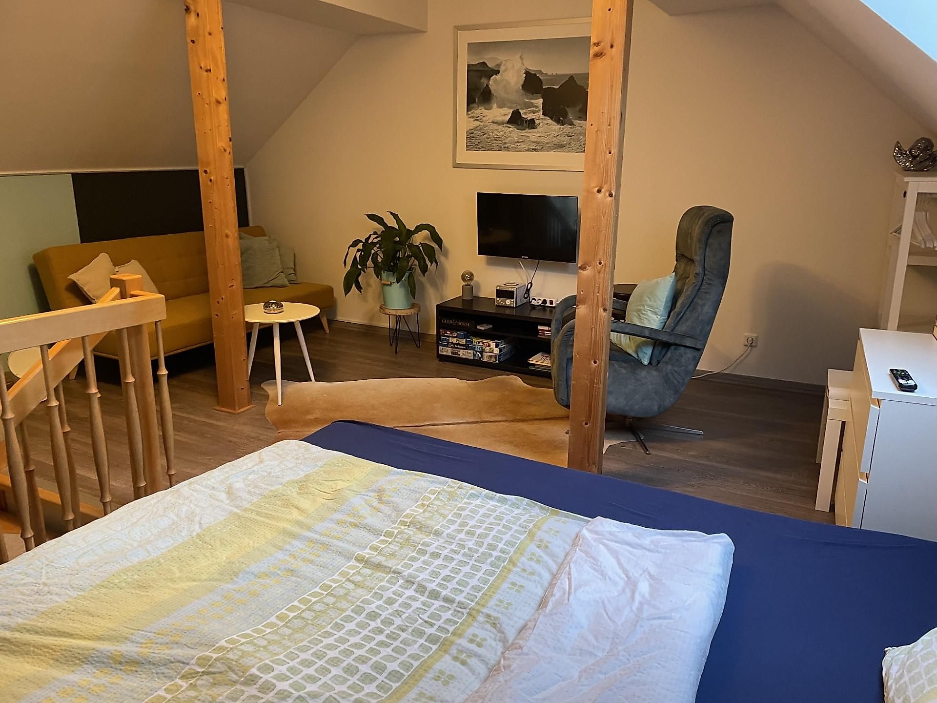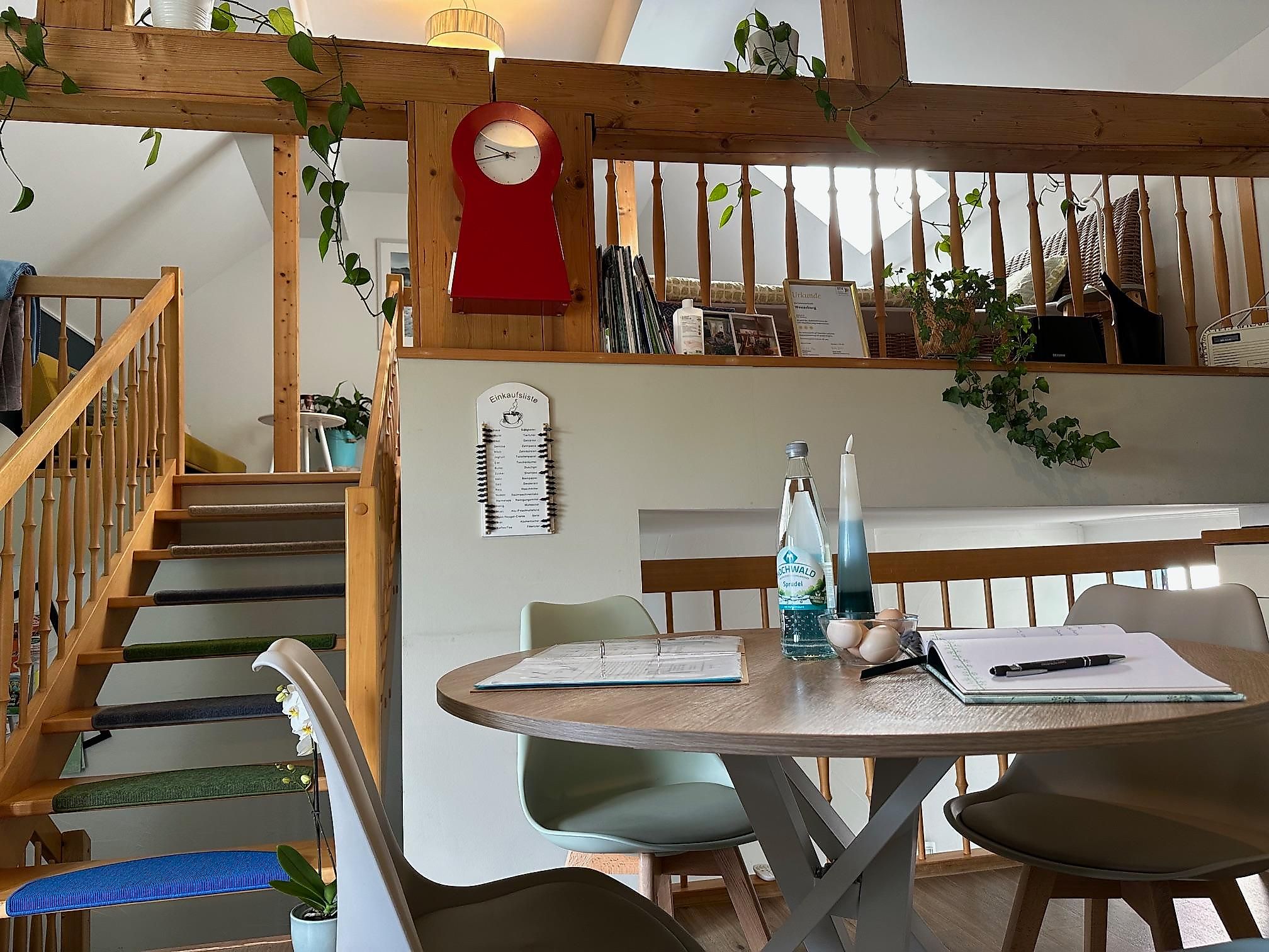 Das hübsche Haus ist von ca. 1930 und wurde in den letzten 6 Jahren von uns von Dach bis Garten umgestylt. Das Appartement "Westerburg" ist im Frühjahr 2018 fertiggestellt worden und in 2024 mit 3 Sternen vom DTV klassifiziert worden. Die Ferienwohnung befindet sich in dem Großteil der ehemaligen Scheune, nun eine wunderschöne, exklusive, offene Ferienwohnung von 55qm mit kleinem französischem Balkon, Blick in die Sterne vom Bett aus (Verdunklungsrollo im Dachfenster) und top ausgestatteter Küche. Im begrünten Hof können Sie Sommertage auch draußen sitzen. Es befindet sich für Sie eine kleine Sitzgelegenheit, welche gerade von den Rauchern gerne genutzt wird. Ein kostenfreier eigener Parkplatz steht für Sie 4 Häuser weiter bereit. Be- und Entladen an der Ferienwohnung ist kein Problem. Der Weg in die Stadt zu verschiedenen Restaurants, Bistro's, Kebab und Pizzahäusern, Apotheken, Banken, etc. ist gerade mal ein paar hundert Meter. Supermärkte sind auch nicht weit, am Rande der Kleinstadt. Tolle Aussicht und ruhige Lage nach hinten und auch nachts zur Strasse finden Sie hier vor. WLAN natürlich inklusive.
