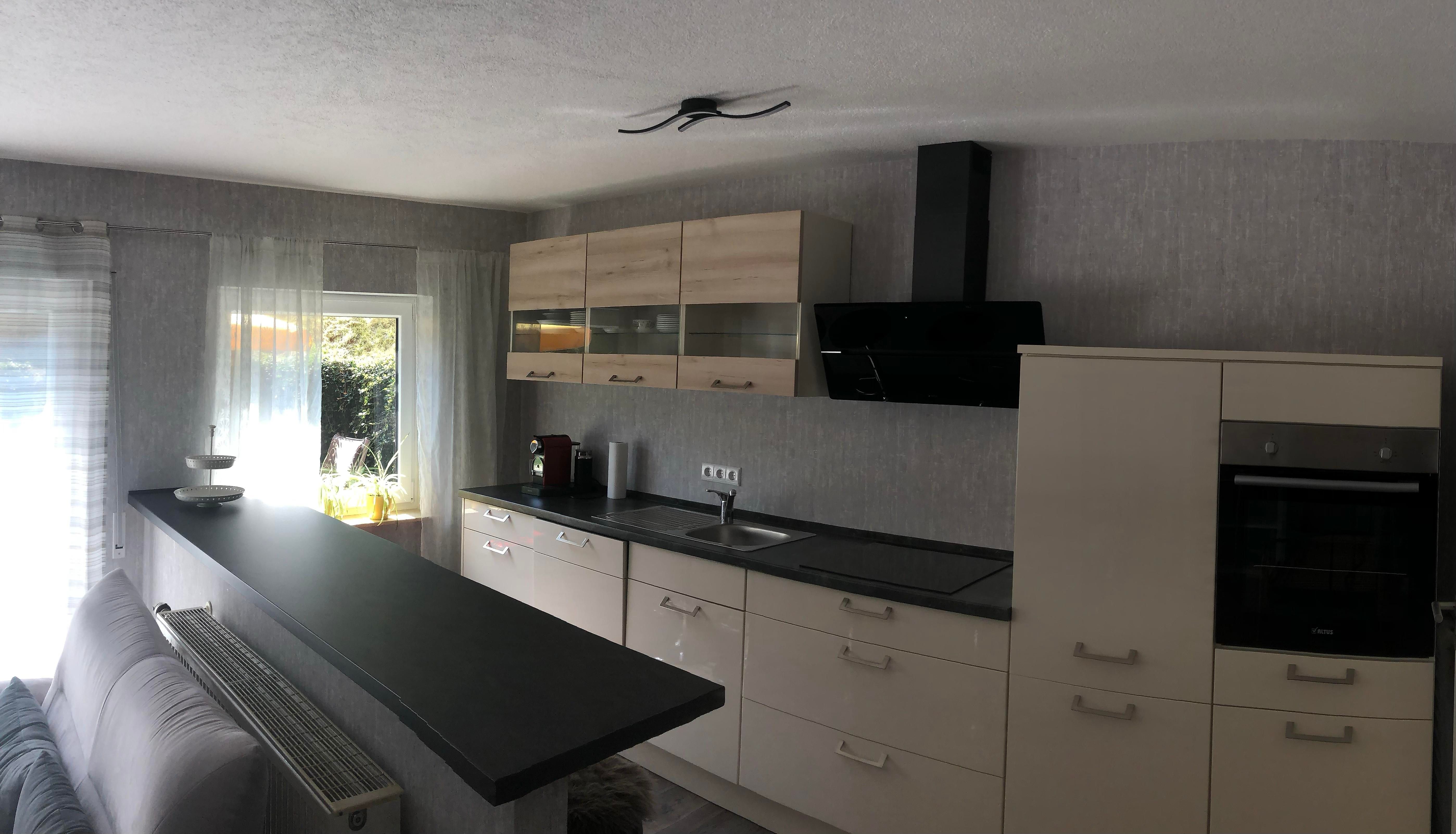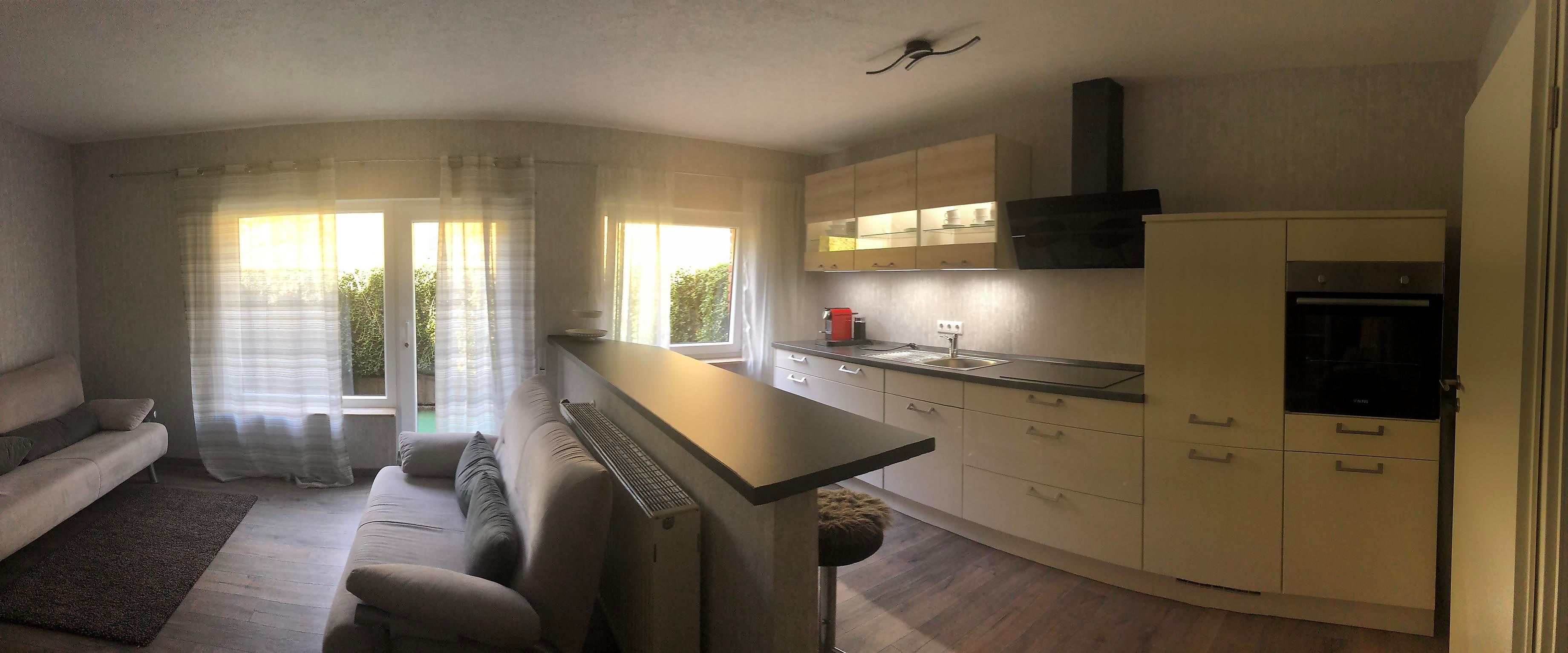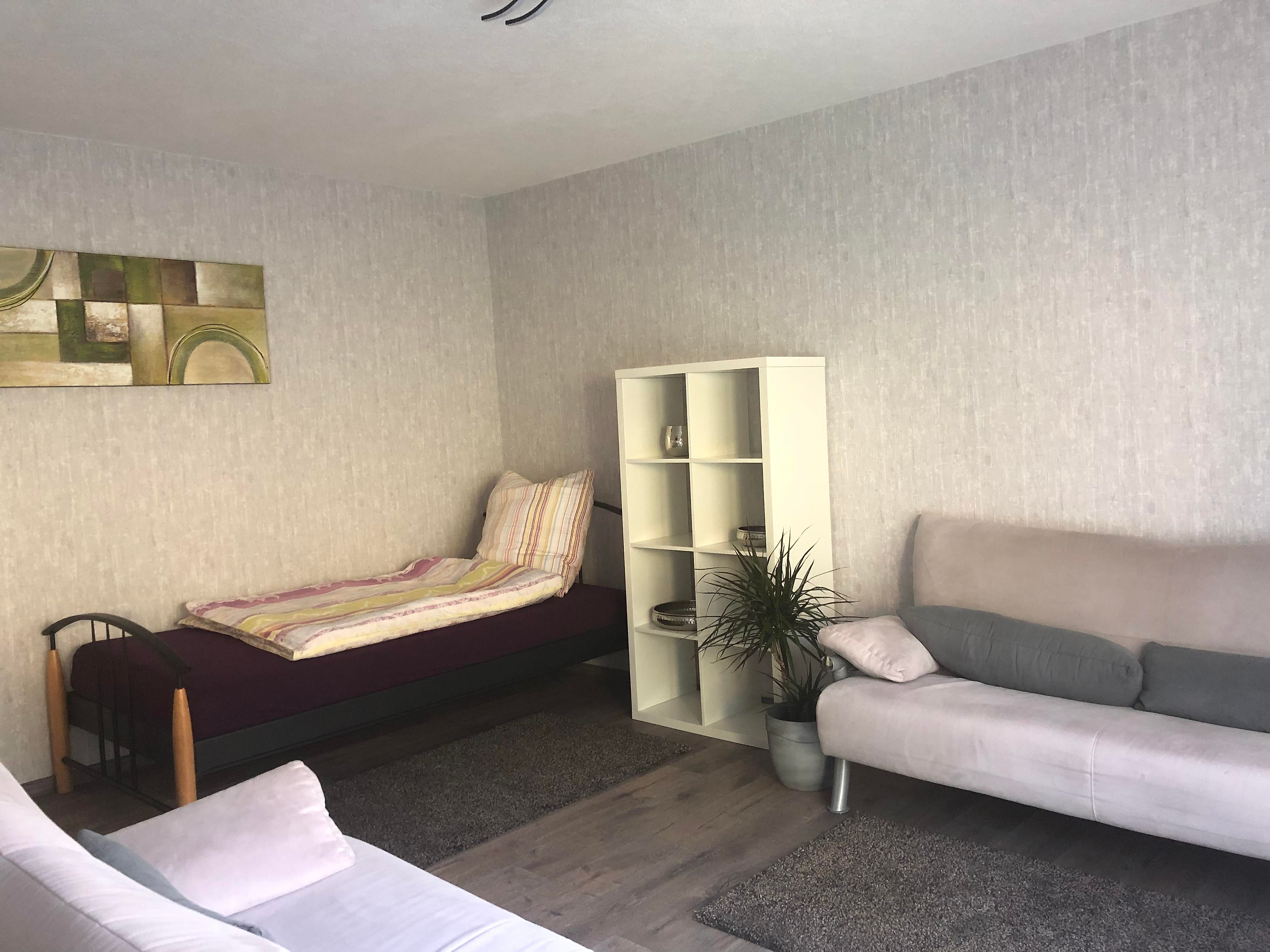 Die Wohnung verfügt über 2 separate Zimmer. In einem Zimmer befindet sich ein offener Wohn-Essbereich. Das Schlafzimmer enthält ein Bett mit durchgehender Matratze in der Größe 140x200cm. Zusätzlich kann ein Gästebett dazugestellt werden. Im Wohn-Essbereich befindet sich bereits ein 100x200cm großes Bett, welches Tagsüber als Sitzgelegenheit genutzt werden kann. Falls "Schnarcher" gerne getrennt schlafen, gibt es zusätzlich die Möglichkeit dieses zu nutzen. Die Küche ist komplett ausgestattet und verfügt über Herdplatte, Einbaukühlschrank mit Gefrierfach und einem Backofen. Eierkocher, Toaster und Kaffeemaschine sind auch integriert.