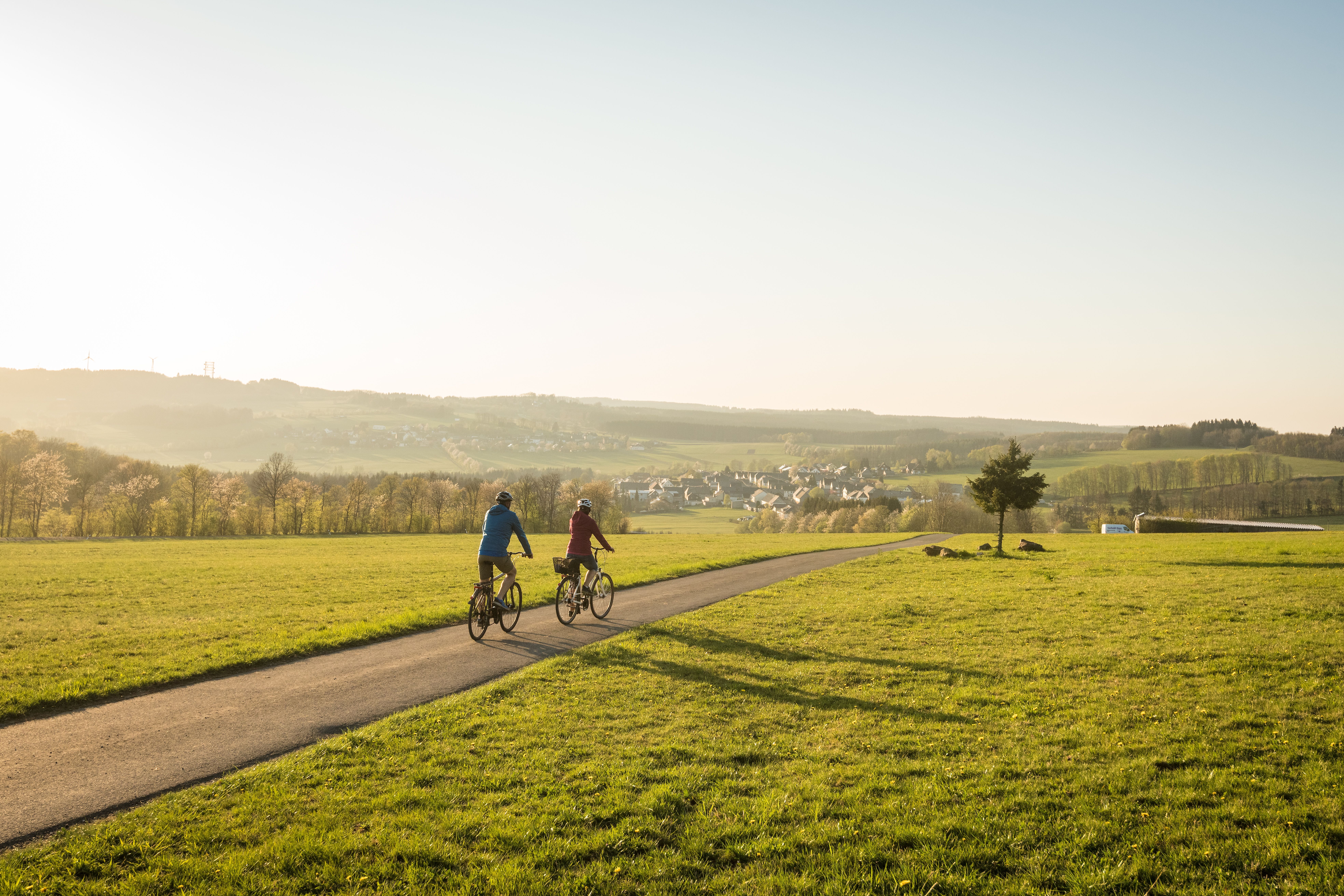 Bei dieser Route liegt der Blick vor allem auf der wunderbaren Natur und den historisch alten Ortschaften mit ihren schönen Gebäuden. So stammt die erste Urkunde von Hof, wo die Tour beginnt, aus dem Jahre 1048. In der Hauptstraße begeistern mich der Glockenturm der evangelischen Kirche und die steinerne Brücke, beides aus der ersten Hälfte des 19. Jahrhunderts. Hinter Hof südwärts liegt linkerhand ein Segelfluggelände. Manchmal kann man die eleganten Flieger hier abheben sehen. In Hellenhahn-Schellenberg finde ich bezaubernde Fachwerkhäuser und ein Wegekreuz. Ein Stück hinter dem Ort liegt im Wald das Naturdenkmal Seitenstein, ein sagenumwobener, etwa 25 Millionen Jahre alter Basaltfels, den ich problemlos erklimme. In Rennerod kann ich mich in diversen Restaurants oder Cafés stärken. Wenn ich drei Wochen nach Pfingsten hier durchkomme, schaue ich mir gern die Hubertuskirmes an. Später erreiche ich mit der Fuchskaute die höchste Erhebung des Westerwalds. Sie bietet fantastische Ausblicke.