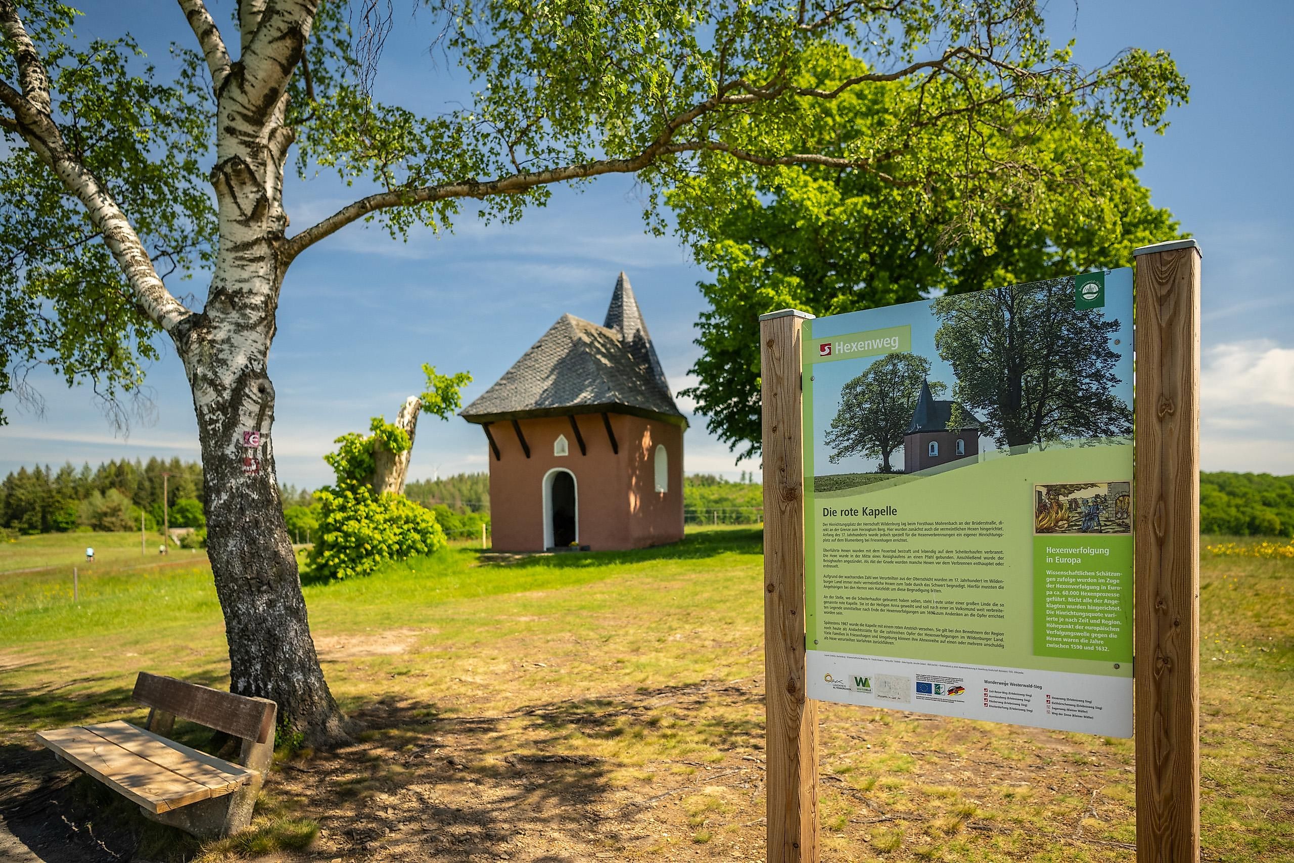 Erlebe eine spannende 8 km lange Zeitreise in das 16. und frühe 17. Jahrhundert, als das Wildenburger Land noch als eine Hochburg der Hexenverfolgung galt. Entlang des Hexenweges (Erlebnisweg der Naturregion Sieg) erfährst Du während dieser geführten Tour viel Wissenswertes, kommst an verschiedenen Kapellen vorbei (z. B. der Roten Sankt Anna Kapelle) und entdeckst zudem die Wildenburg und das Wasserschloss Crottorf.
