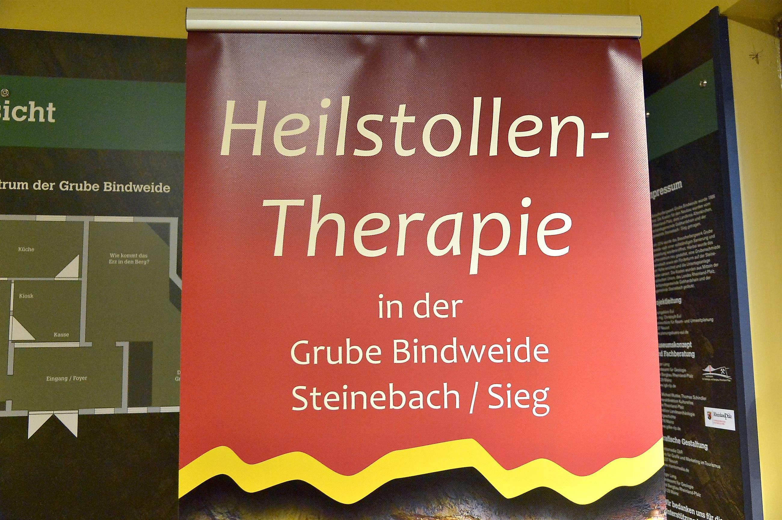 In der ehemaligen Pulverkammer des stillgelegten Eisenerzbergwerks befindet sich der Therapieraum des Heilstollens. Die reine und kühle Luft im Bergwerk führte zu der Idee, die Grube zu Heil- und Therapiezwecken zu nutzen. Das Gutachten des Deutschen Wetterdienstes bestätigte 2015 die Luftqualität und so wurde der zugängliche Stollen des Besucherbergwerks als Heilstollen zertifiziert.Der Therapieraum befindet sich 450 Meter weit im Stollen; dort seid ihr 50 Meter unter der Erdoberfläche. In der Stille des Berges wartet eine staub- und allergenfreie Luft auf euch. Die immer gleichbleibende Temperatur von 10 ° C und die hohe Luftfeuchtigkeit von 98 % sind optimale Voraussetzungen für die Therapierung von vielen Atemwegserkrankungen, Allergien, psychosomatischen Beschwerden und stressbedingten Anspannungen. Eine naturheilkundlich orientierte Arztpraxis begleitet euch bei den Therapieangeboten.Es gibt rund ein Dutzend Heilstollen-Therapiezentren in Deutschland, dieser ist der Einzige in Rheinland-Pfalz. Der Deutsche Heilstollenverband kümmert sich um die wissenschaftliche Untersuchungen und eine verbesserte Anerkennung der Therapien, sorgt für die Überwachung der Qualitätskriterien und bündelt die Informationen aus den Therapiezentren.