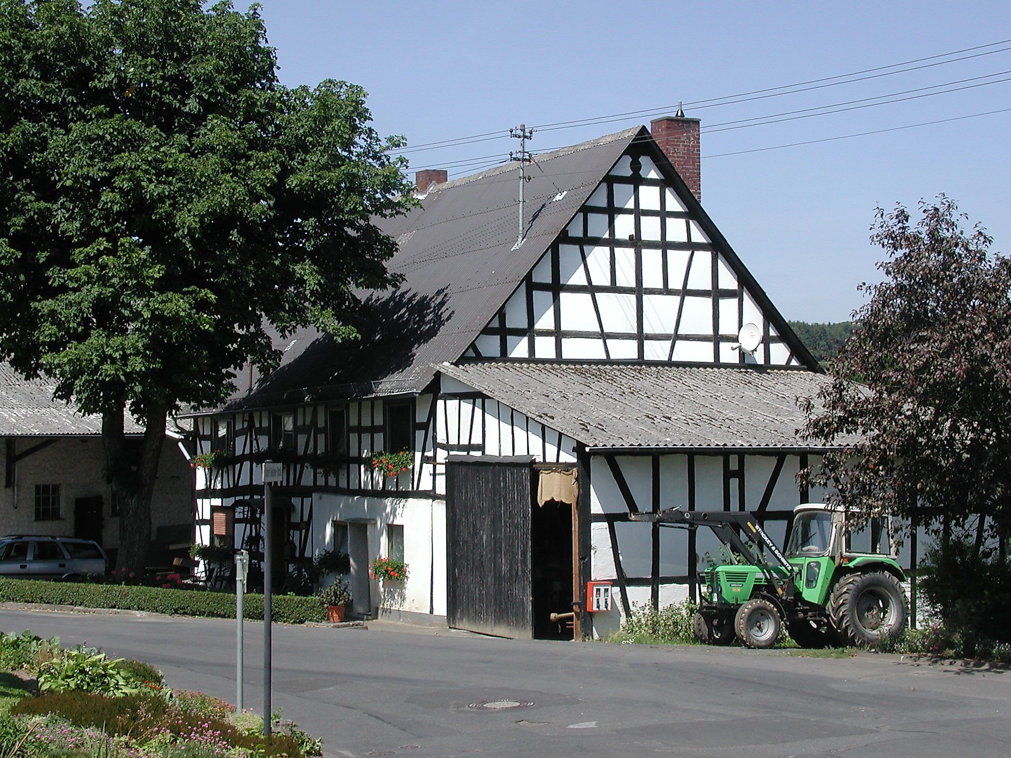 In Hilkhausen fahren wir in westlicher Richtung durch die „Alte Dorfstrasse“ hinauf zu Raiffeisenstrasse (L276), eine alte Höhenverbindung zwischen Weyerbusch und Flammersfeld.