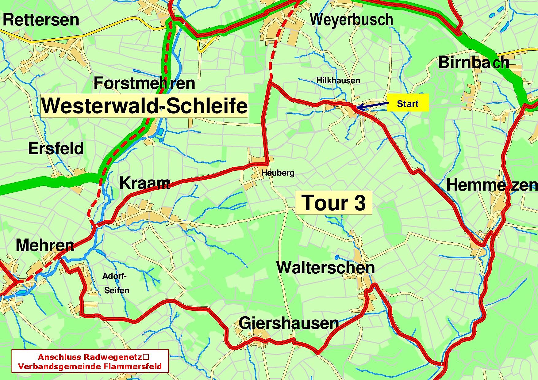 Über die B 8 nach Weyerbusch und hier über den Finkenweg nach Hilkhausen