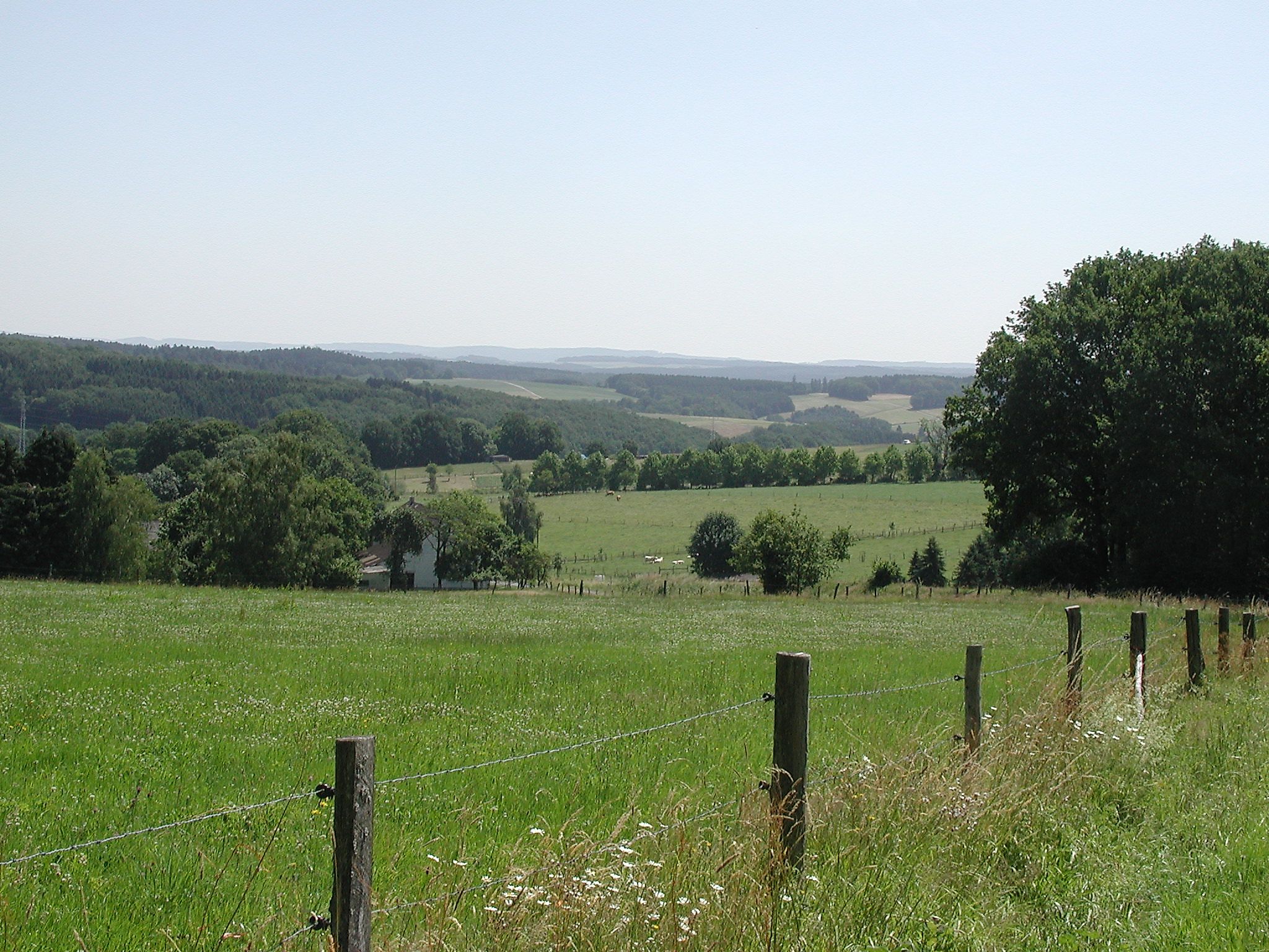 Links liegt der Asberg, der mit seinen 333 Höhenmetern einen weiten Ausblick in die Umgebung bietet. Auf der stärker befahrene L 276 bleiben wir nur ein kurzes Stück, um in Heuberg Richtung Kraam abzubiegen.