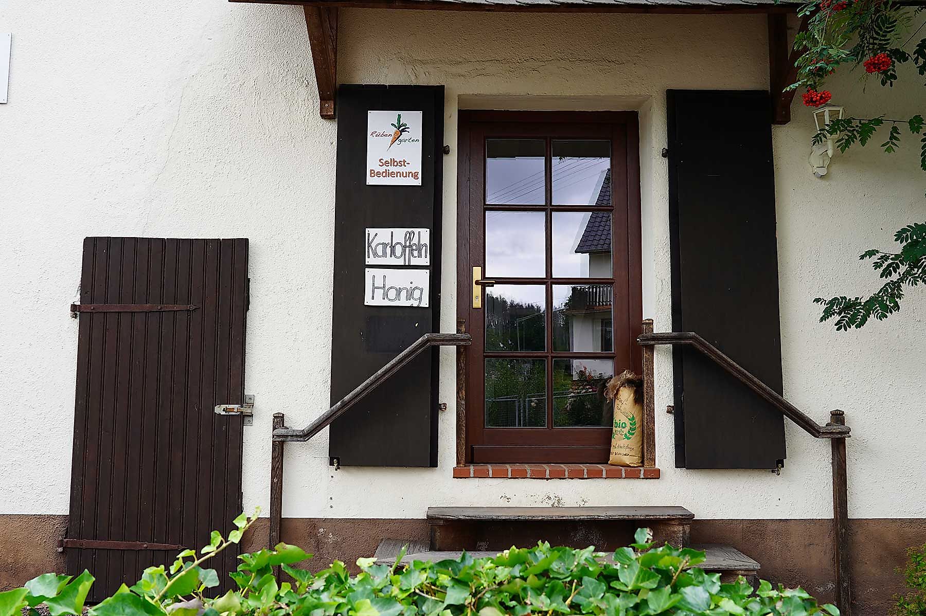 In Helmenzen und Strickhausen gibt es kleine landwirtschaftliche SB-Verkaufsstationen, wo ich mir leckere Landprodukte auch mit nach Hause nehmen kann.