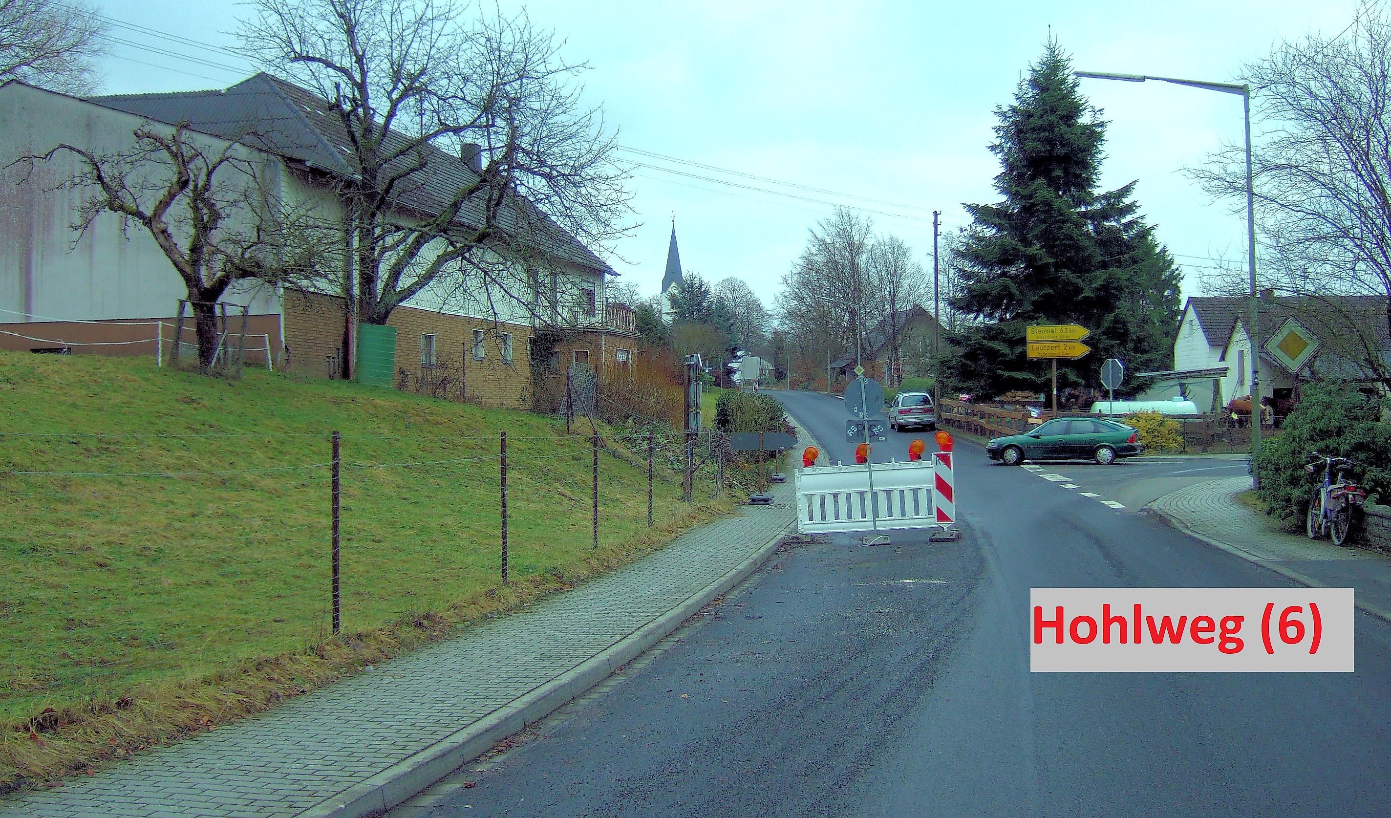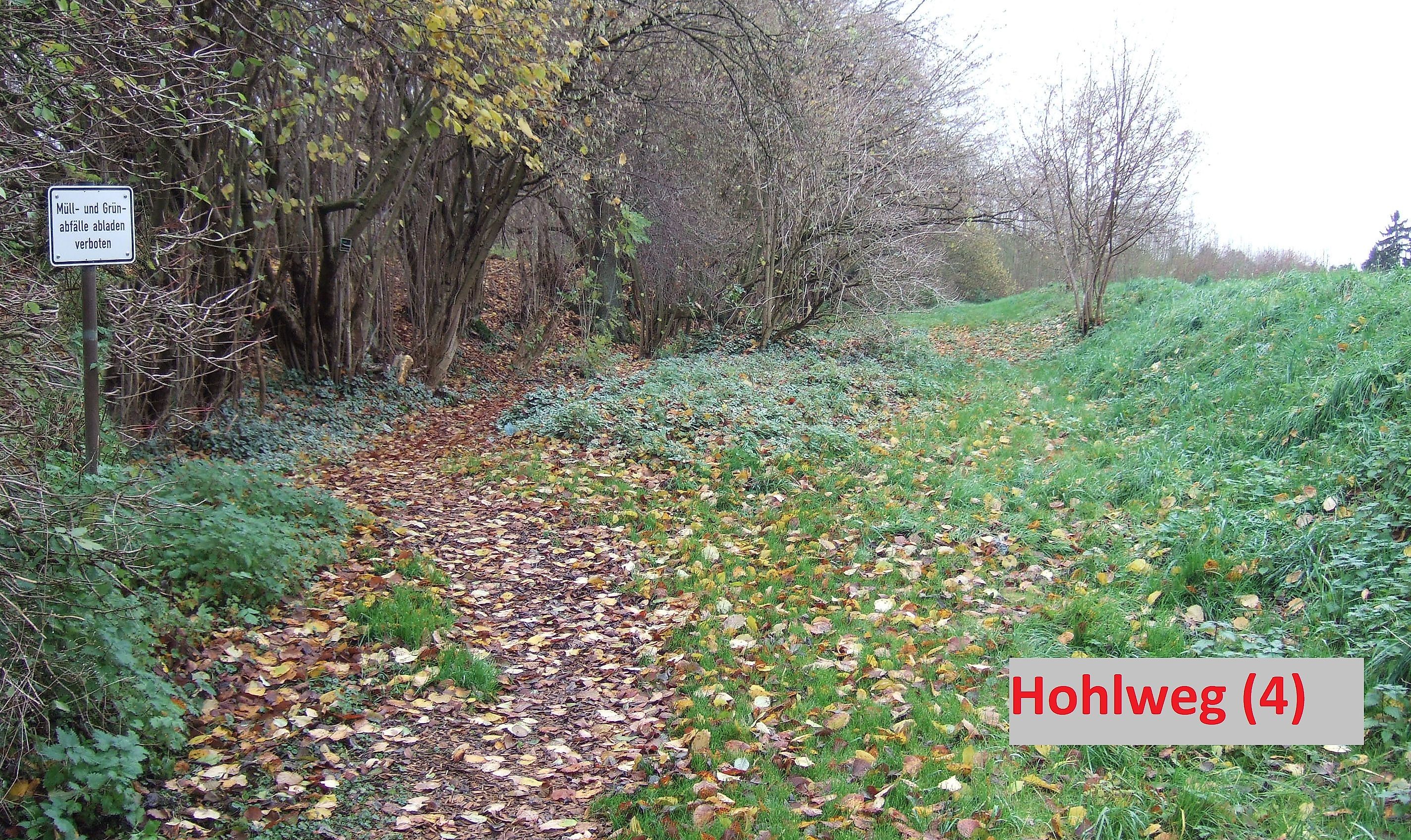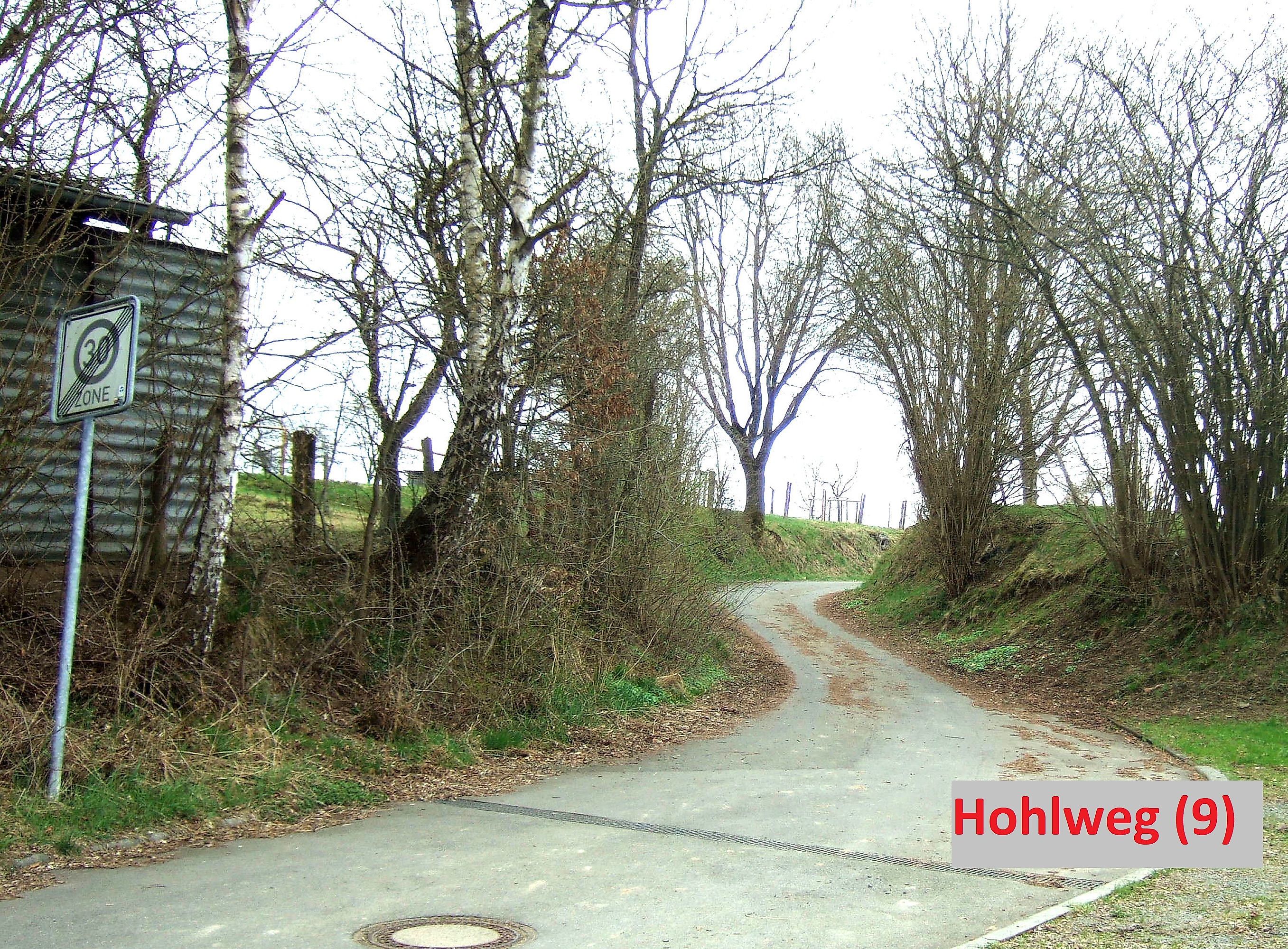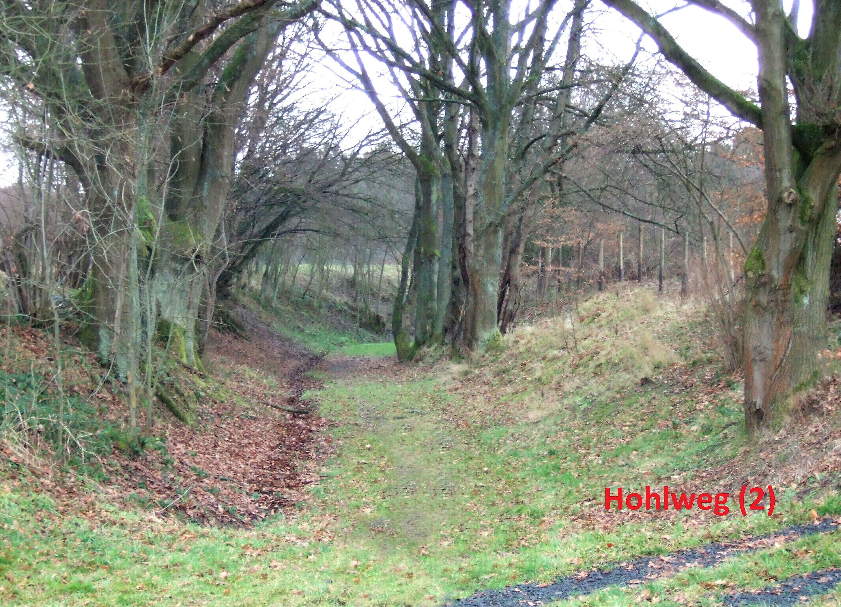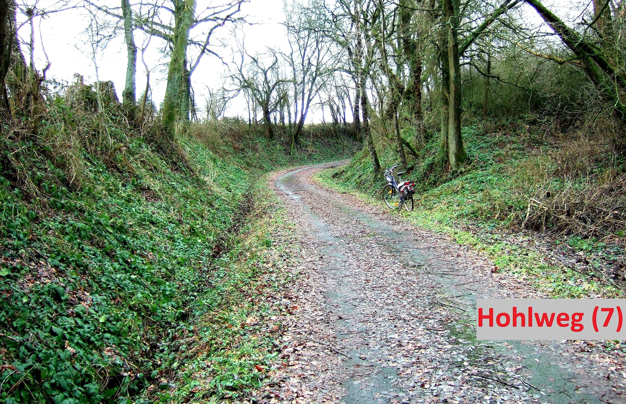Am Ortseingang findet man die äußerst spärlichen Reste des Hohlwegs Nr. (6), der laut Topografischen Karte aus dem Jahr 1847 hier früher bestand.