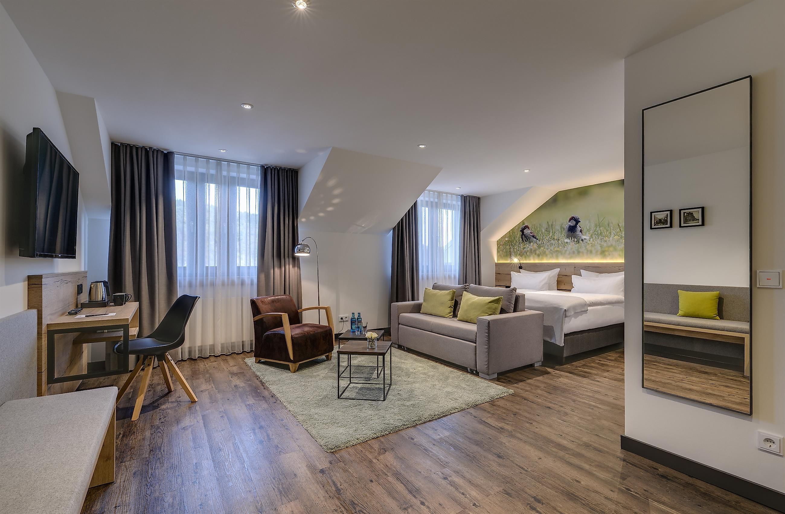 Neben den Standard-, Einzel- und Doppelzimmern stehen eine Suite, drei Junior- Suiten, Komfort- Einzel- und Doppelzimmer mit Balkon sowie mehrere Familienzimmer zur Wahl: