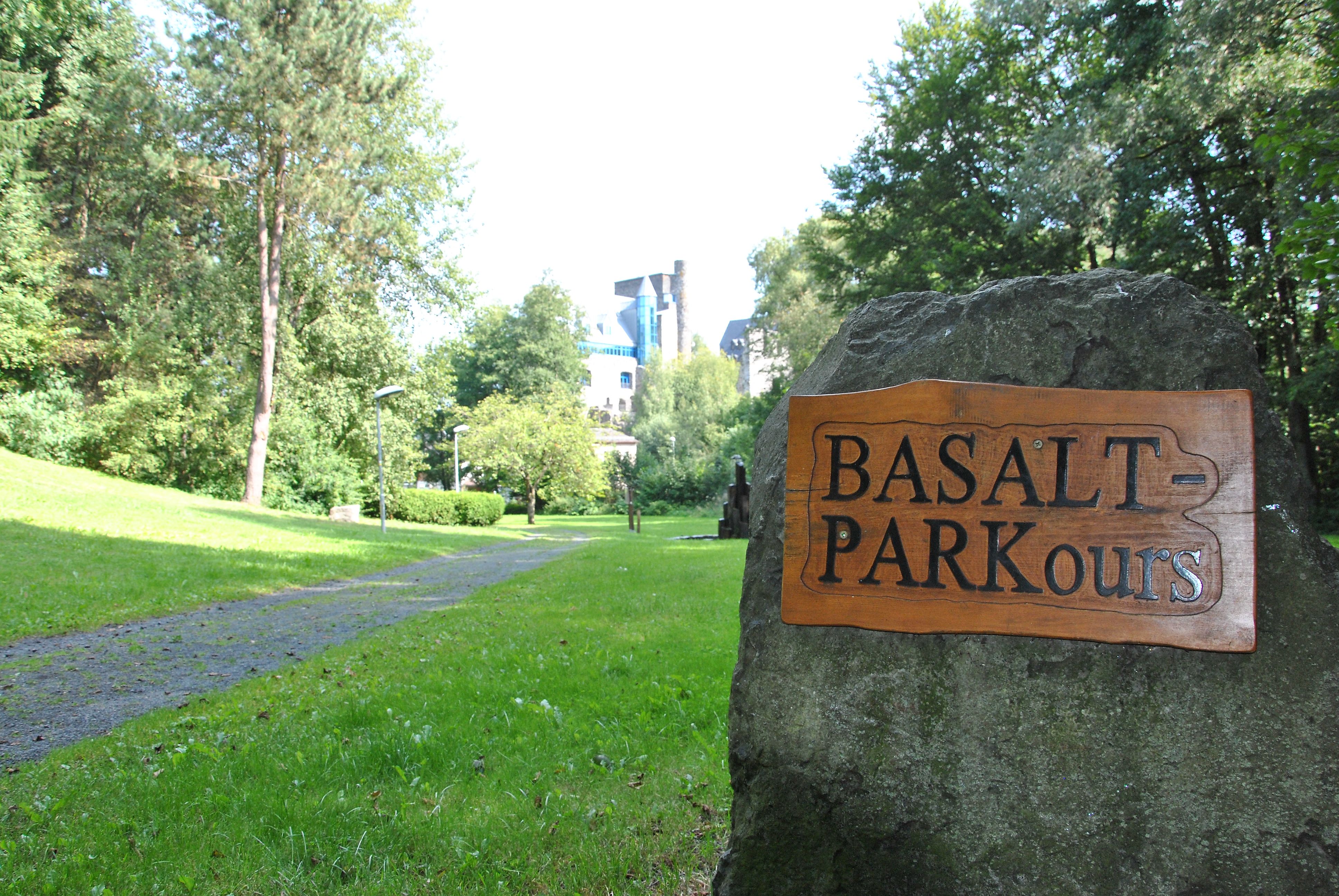 Mein Weg beginnt auf dem Parkplatz der Ulmbachtalsperre. Über den Damm laufe ich am See entlang hinein in den Wald. Bald entdecke ich eine geologische Besonderheit: Eine Kammquarzit-Klippe – entstanden aus den ehemals reinen Sandstränden der Unterkarbonzeit. Ich folge dem Ulmbach über Wiesenwege und erreiche die Dorfmitte von Beilstein mit der schönen Basalt-Schlosskirche aus dem 17. Jahrhundert. Auf der linken Seite grüßt dann Burg Beilstein. Einst ein Grafensitz, befindet sich der restaurierte Basaltbau heute in Privatbesitz. Mein Weg führt mich über den plätschernden Ulmbach zum BASALT-PARKours, der mir die vielen Nutzungsarten des Steins aufzeigt. Über die Trasse der ehemaligen Ulmtalbahn, zum Ulmtalradweg ausgebaut, wandere ich zurück zur Ulmbachtalsperre. Unterwegs laden mich idyllische Rastplätze und Aussichtspunkte ein, die Umgebung zu genießen.