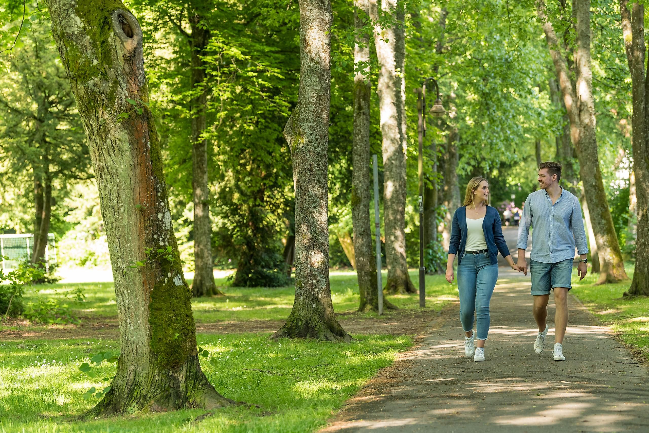 Durch den Burggarten und vorbei am Landschaftsmuseum führt dieser Weg auch am alten Judenfriedhof entlang zu den Bodendenkmälern in der Nähe der ehemaligen Ziegelhütte. Der Hachenburger Stadtwald ist die Heimat unterschiedlichster, faszinierender Baumarten. Ein idealer Weg, um Ruhe und Weite zu genießen. Es gibt traumhafte Aussichten auf Hachenburg und das umliegende Herz des Westerwaldes zu entdecken. Bevor es wieder durch den Burggarten zum Zielpunkt des Weges geht, lädt die historische Hachenburger Innenstadt zu einem kleinen Bummel und einer Pause auf dem Alten Markt mit ihrem goldenen Löwen ein.