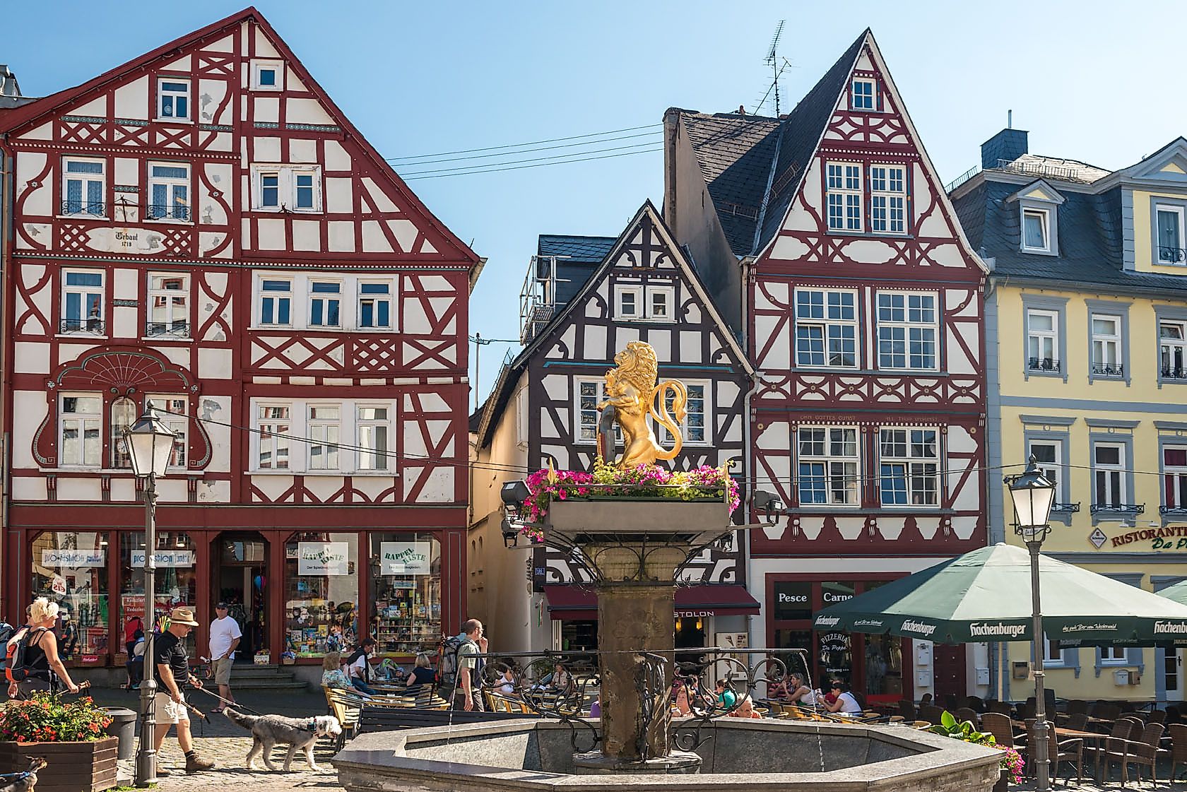 Der "Alte Markt" mit Löwenbrunnen ist das barocke, historische Zentrum von Hachenburg. Den Alten Markt nach Osten links oder rechts an der Evangelischen Kirche vorbei bis zur Kreuzung Borngasse - Leipziger Straße – Alexanderring verlassen. Hier beginnt der Burggarten. Links nach ca 150m hat man Start- und Zielpunkt wieder erreicht.