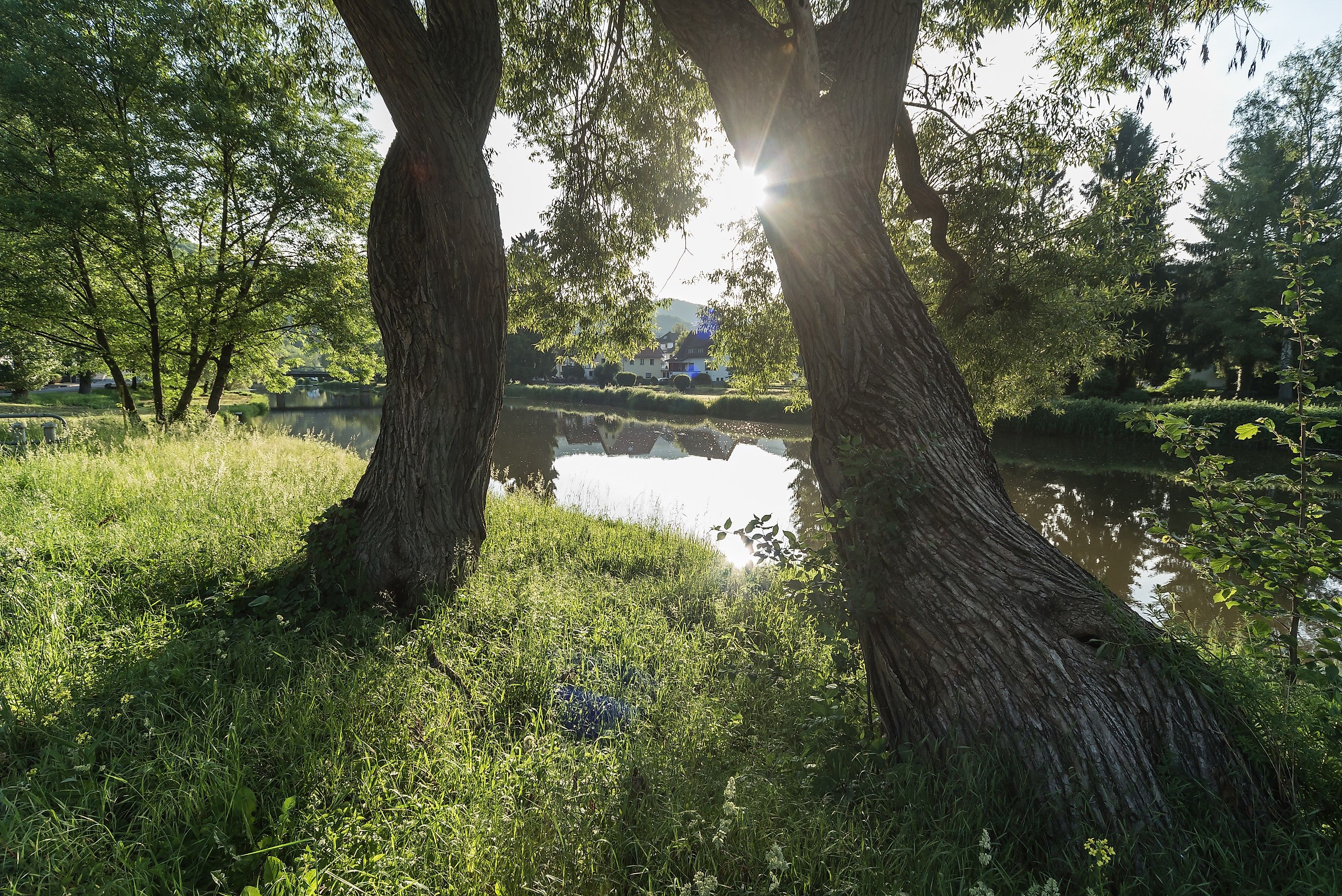 Viele Bänke am Wiedufer laden zum Verweilen und Genuss der wärmenden Frühlingssonne ein.