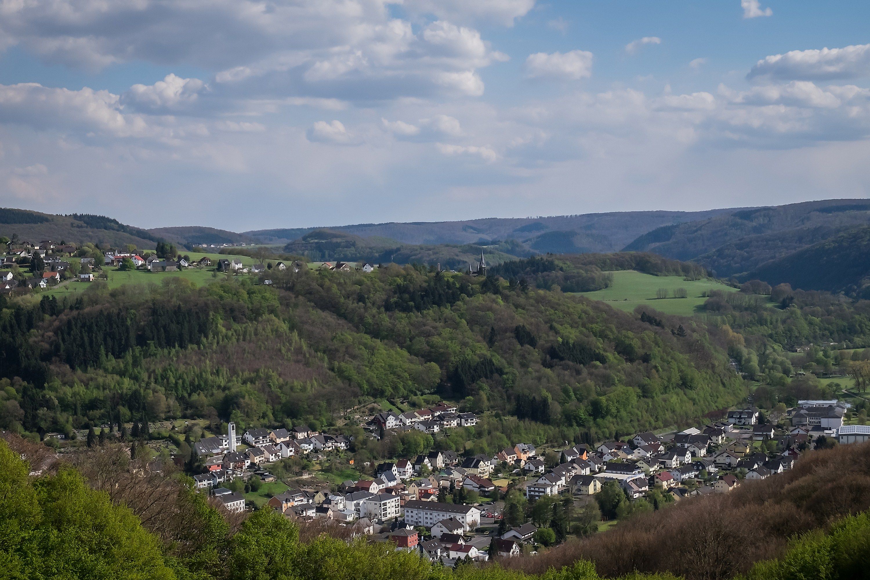 Über die L255 im Wiedtal bis zur Ortsmitte von Waldbreitbach, hier ist der Parkplatz Marktstraße ausgeschildert