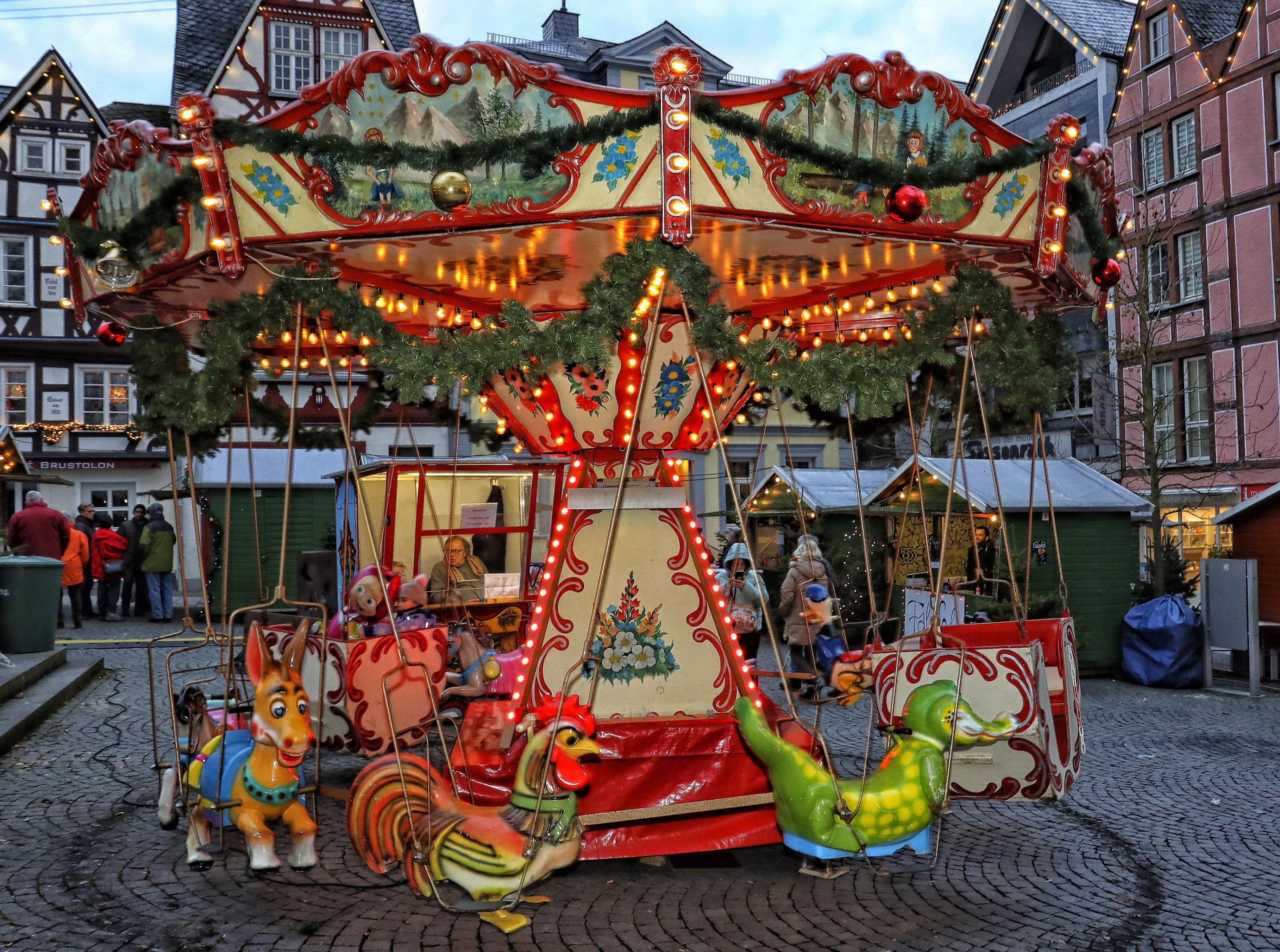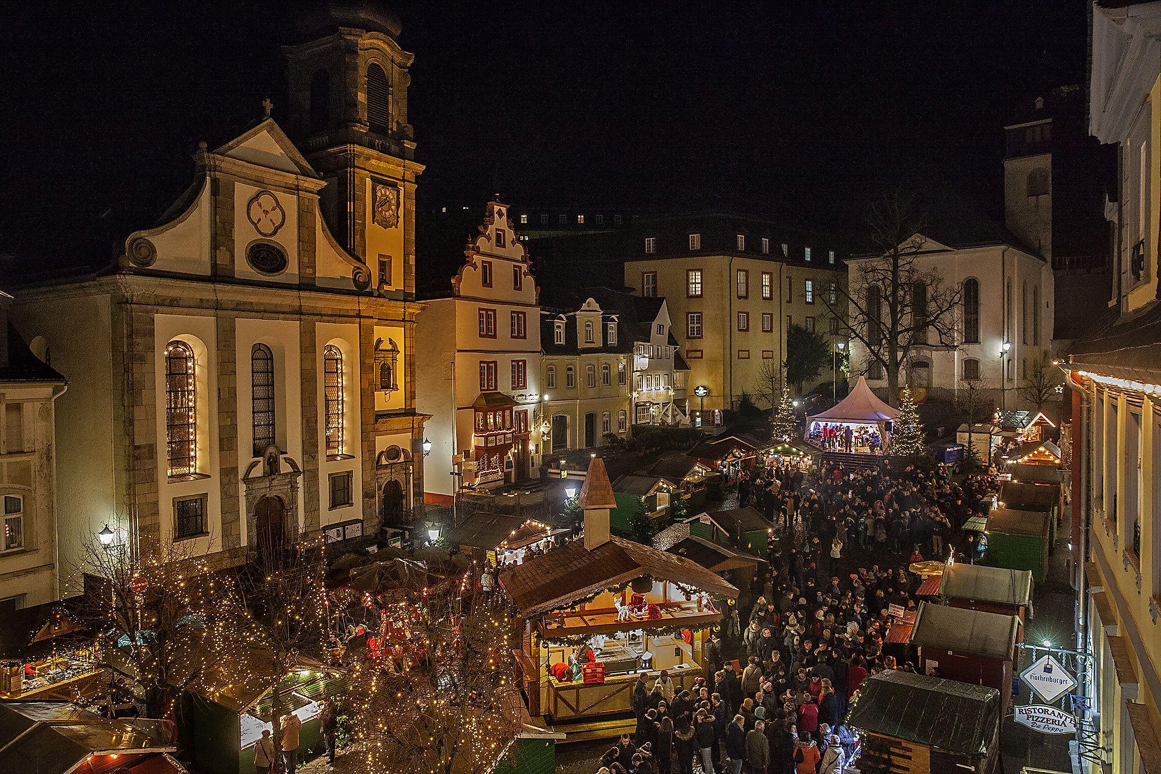 Schneeflocken fallen sacht zu Boden und verzuckern die Stände am Alten Markt. Der betörende Duft von aromatischem Glühwein, Punsch und Mandelkern steigen in die Nase und wärmt Hände und Herzen. Zwischen Donnerstag und Sonntag am Wochenende um den dritten Advent begrüßt Hachenburg seine großen und kleinen Gäste in der geschmückten Innenstadt und bietet glückstrahlende und glanzvolle Tage, reich an Nostalgie, Vorfreude und Frieden. Örtliche Musikvereine mit weihnachtlichen Klängen sowie der tägliche Beusch des Nikolaus verkürzen die Wartezeit auf Weihnachten.Öffnungszeiten:Donnerstag bis Samstag von 11:00 Uhr bis 20:00 UhrSonntag von 11:00 Uhr bis 18:00 Uhr