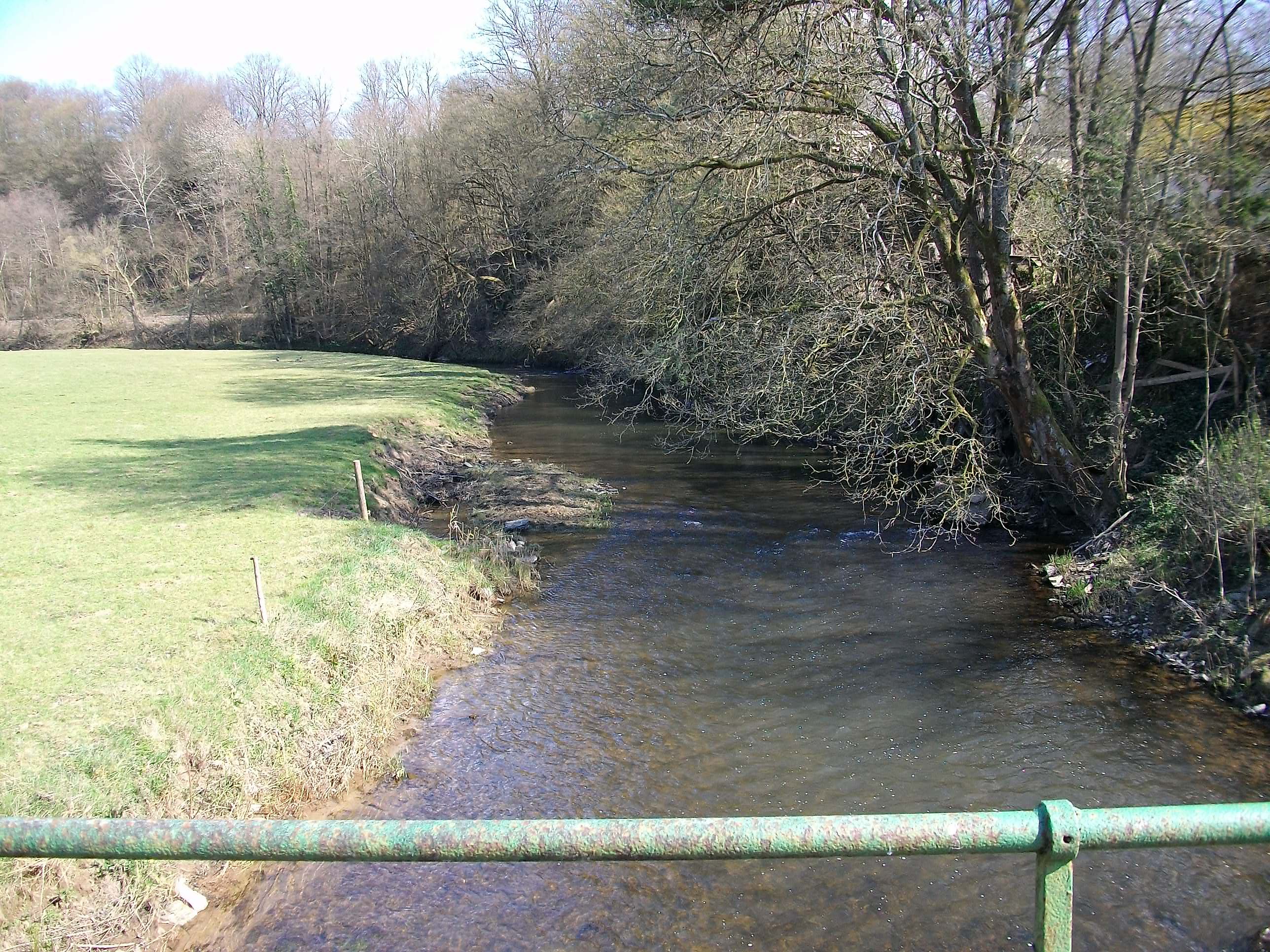 Hinter Berzhausen befinde ich mich wieder ganz nah am Fluss, begleitet durch die Bahngleise der "Holzbachtal-Strecke" Richtung Puderbach. Derzeit fahren hier jedoch nur noch Güterzüge, der Personentransport ist bereits seit vielen Jahren eingestellt. Am Wald entlang erreiche ich den Sportplatz von Bettgenhausen und wechsel hier auf den Hauptwanderweg + des Westerwald-Vereins.Dieser bringt mich auf direktem Weg durch Wiesen- und Waldlandschaft wieder zurück nach Schöneberg.