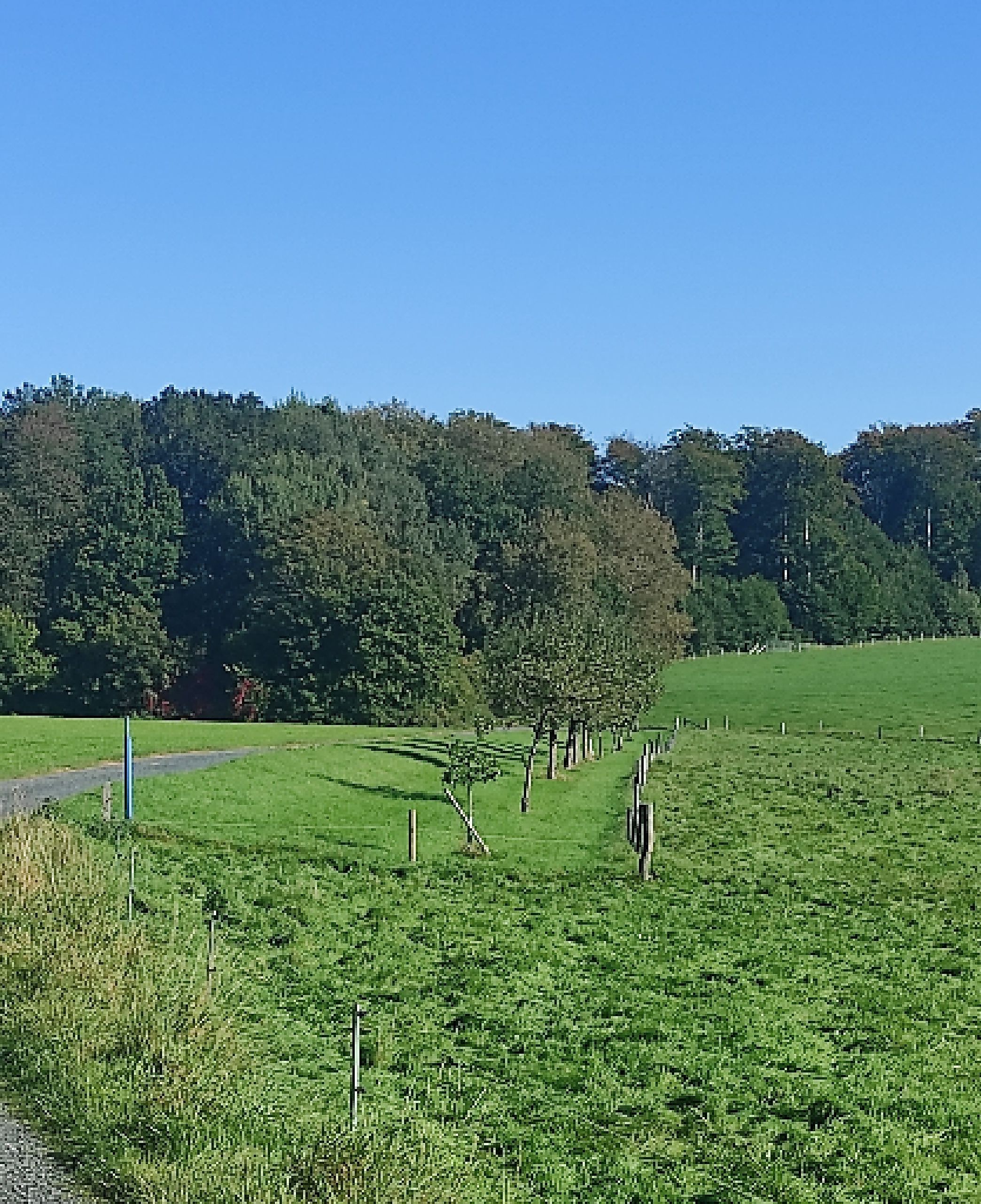 Von Schöneberg aus kann man auch wunderbar den Wiedweg erwandern. Verschiedene Buslinien bringen mich auch am Wochenende von den Endpunkten zurück. Infos Wiedweg
