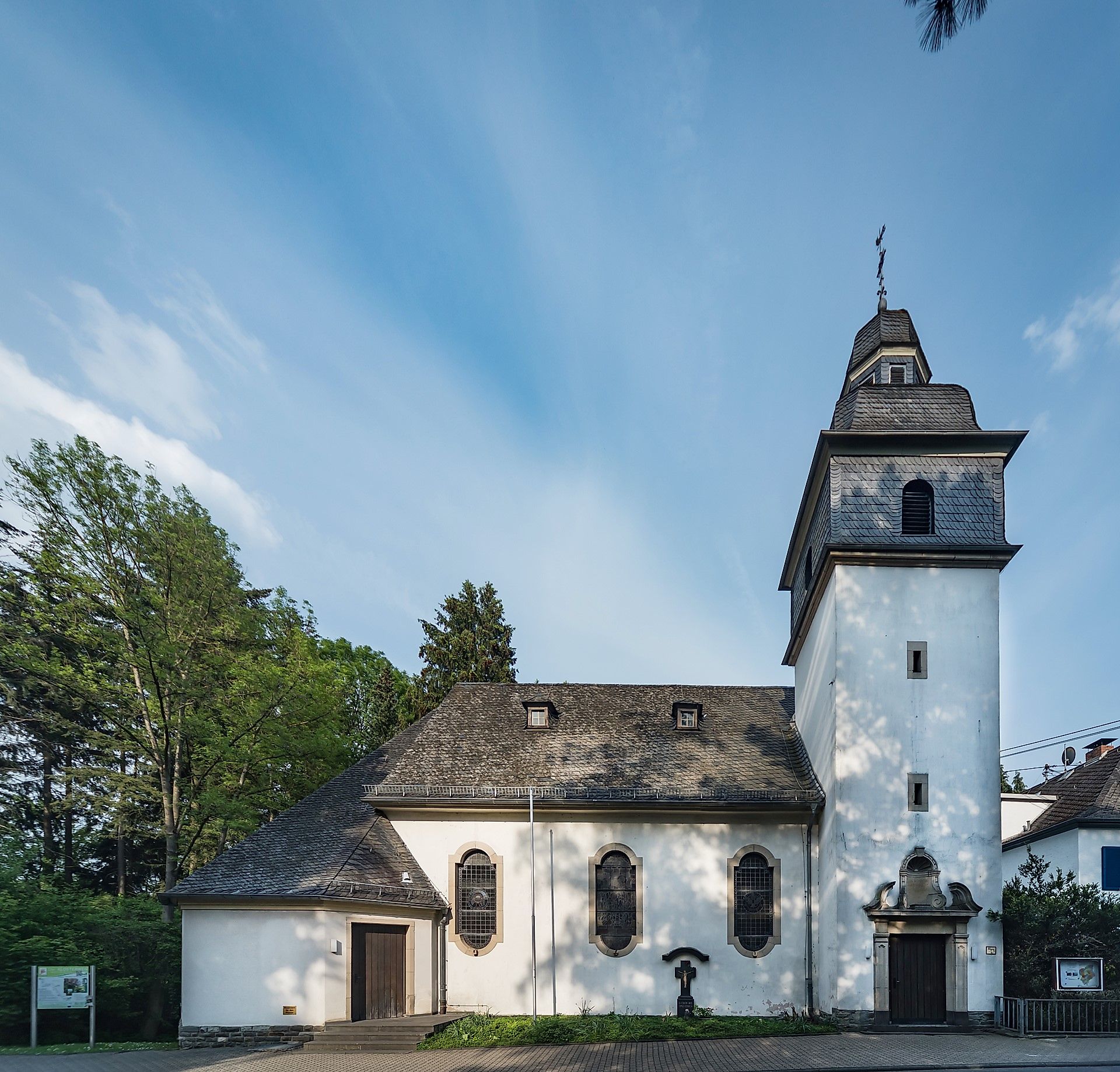 Pfarrkirche "Maria Himmelfahrt" Waldbreitbach und Zuweg durch Waldbreitbach bis zum Westerwald-Steig