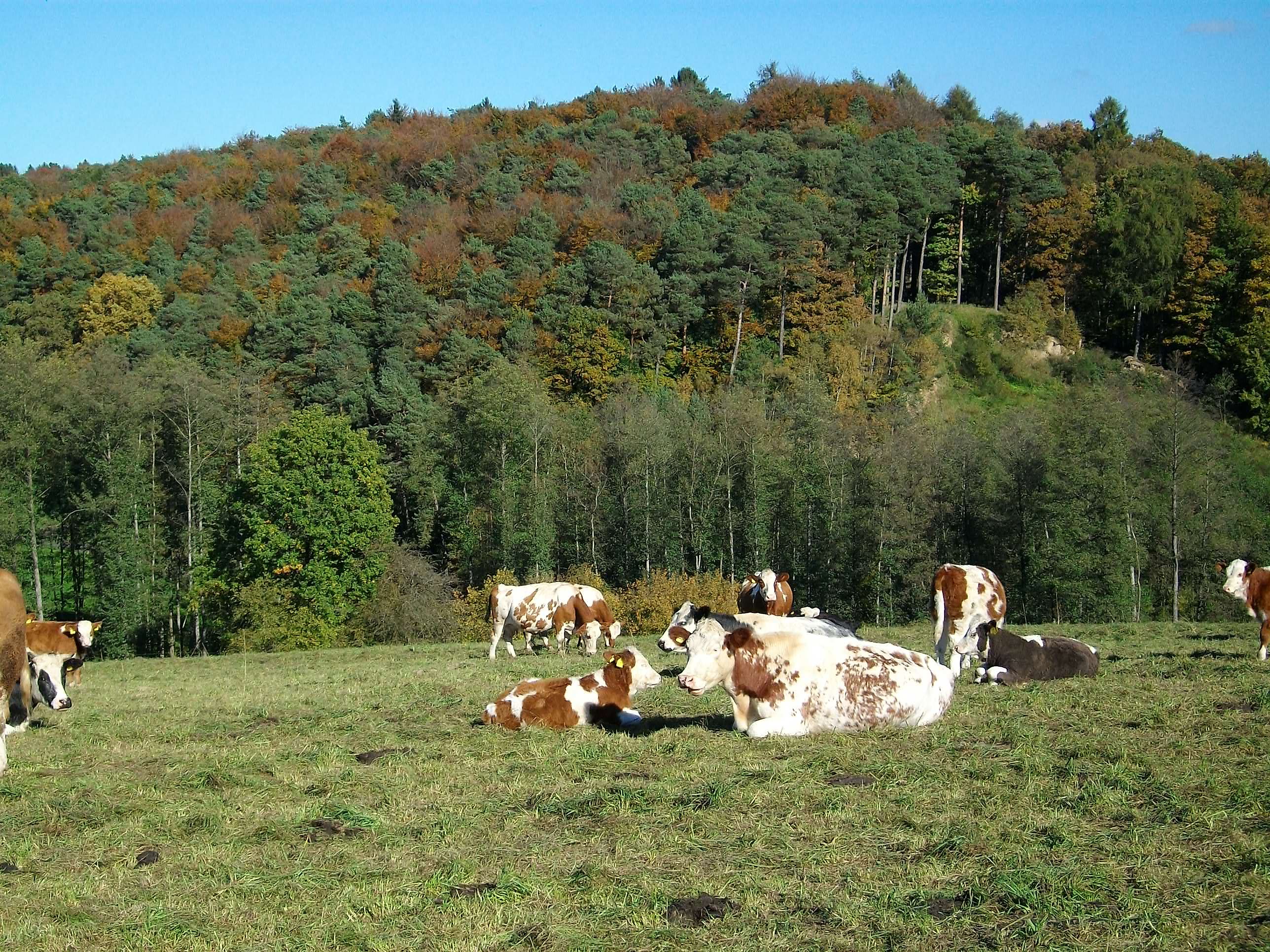 Am Ende des Waldstücks geht es nochmal hinab zum Sessenhauser Bach und ich erreiche die legendäre Friedenseiche. Auf dem Weg nach Hirzbach gibt es einen wunderschönen Ausblick in die Hügellandschaft, welche im Untergrund von der früheren Nato-Pipeline durchzogen ist. Im Notfall sollte hierdurch die Treibstoffversorgung der NATO-Streitkräfte erfolgen. Über befestigte Wege geht es weiter durch Hirzbach und nach Hähnen. Am Waldrand entlang quere ich nochmal zwei kleine Quellbäche des Hirzbaches und gelange über geteerte Wege nach Maulsbach. Am Ortsende biege ich wieder ein in die wunderbare Wiesenlandschaft des Maulsbaches und genieße das letzte Stück meiner Wanderung über befestigten aber naturnahen Weg, zurück zum Ausgangspunkt.