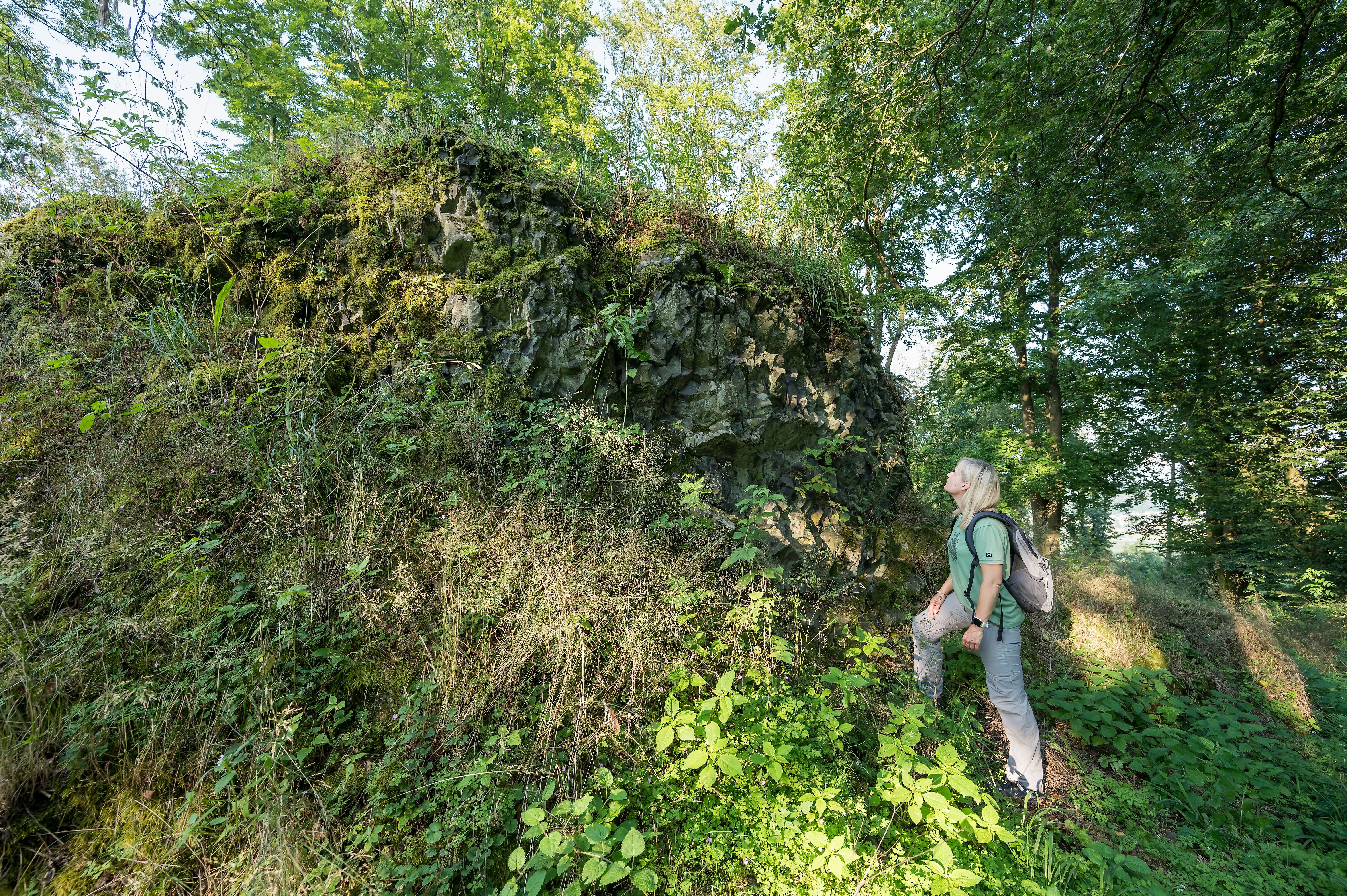 Mit dem Post-, Brinken- und dem Dreifelder Weiher passierst du gleich drei der sieben Weiher des Naturparadieses Westerwälder Seenplatte. Beim Wandern kannst du entspannt den Blick über das beruhigende Blau des Wassers schweifen lassen, bevor du der Wied flussaufwärts zu ihrer Quelle bei Linden folgst. Mit der spektakulären Fernsicht vom Aussichtsturm am Gräbersberg aus wartet eine der besonderen Attraktionen dieser Wandertour auf dich. Jetzt wird es geradezu mystisch - beim sagenumwobenen Welterstein (ein Basaltfelsen mit 480 m Höhe) sollen es die Heinzelmännchen ganz schön bunt getrieben haben. Am Ende der Etappe liegt der Stöffel-Park mit seiner Kulisse, wo du unter anderem im Museum Fossilien entdecken kannst.