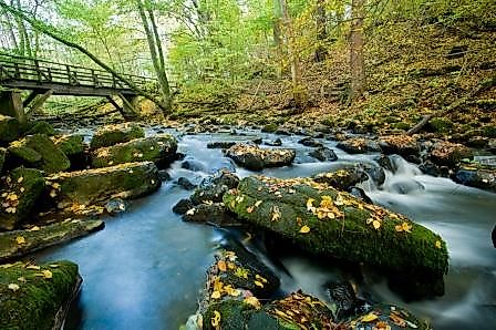 Ich starte am Camping Park Weiherhof bei Seck und folge dem WesterwaldSteig zunächst vom Großen zum Kleinen Secker Weiher und weiter an dem Ort Seck vorbei leicht bergab rund drei Kilometer zum herrlichen Naturschutzgebiet Holzbachdurchbruch. Am Dappricher Hof bei Seck liegt der Einstieg zur Holzbachschlucht vor mir. Nach einer kurzen Kaffeepause entdecke ich die einen Kilometer lange und bis zu 20 Meter tiefe Schlucht, in der sich der Holzbach, ein Nebenbach des Elbbaches, seinen Weg tief in den Basalt gegraben hat, ehe er an Gemünden vorbei nach Hessen fließt. Heruntergebrochene Basaltblöcke und umgestürzte Bäume geben dem engen Tal einen wildbachartigen Charakter. Ich orientiere mich an den Informationstafeln entlang des Weges, die mir helfen, hier heimische Pflanzen und Tiere zu bestimmen.
