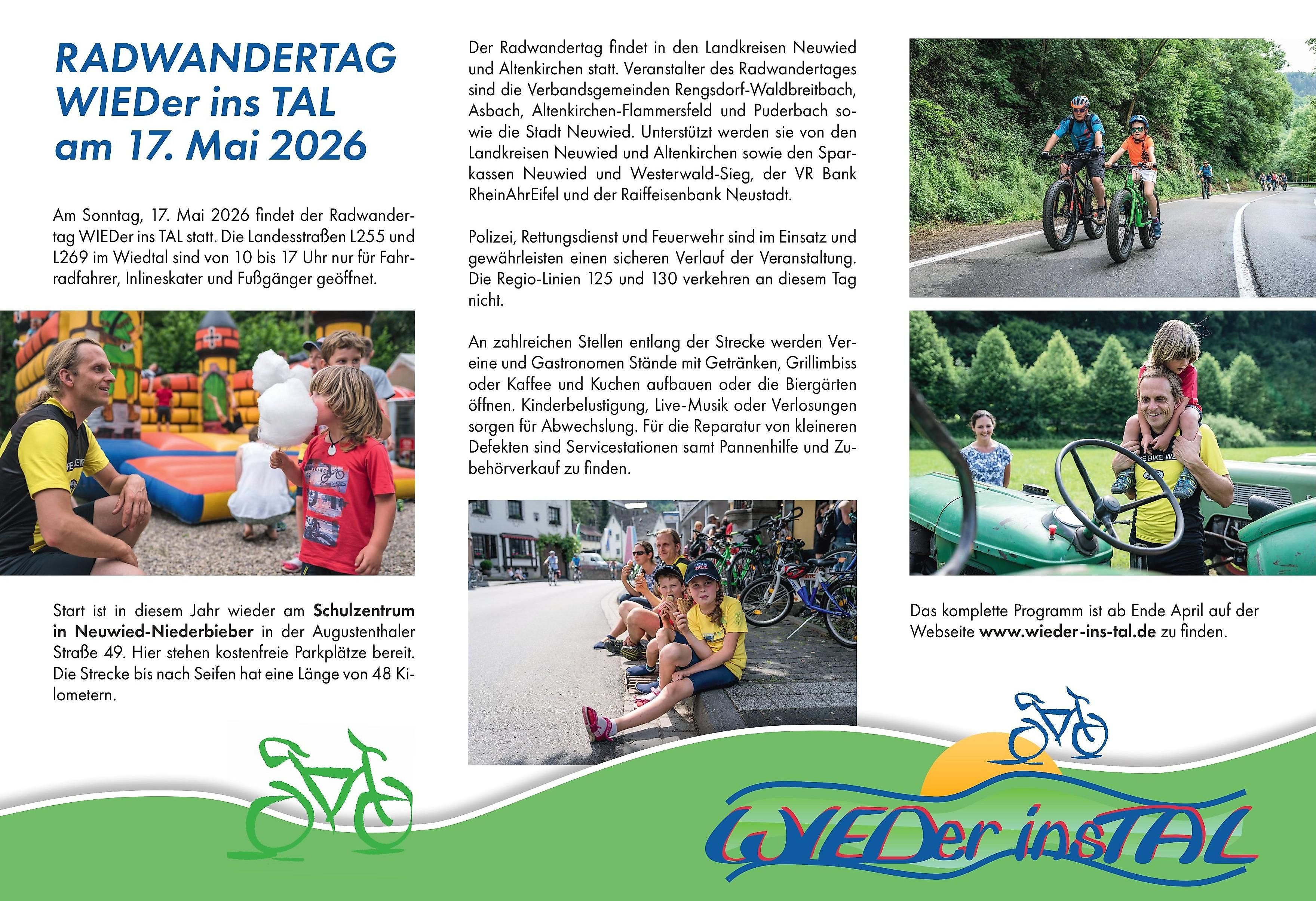 Der Radwandertag WIEDer ins TAL findet am Sonntag, 17. Mai 2026 von 10:00 – 17:00 Uhr statt.