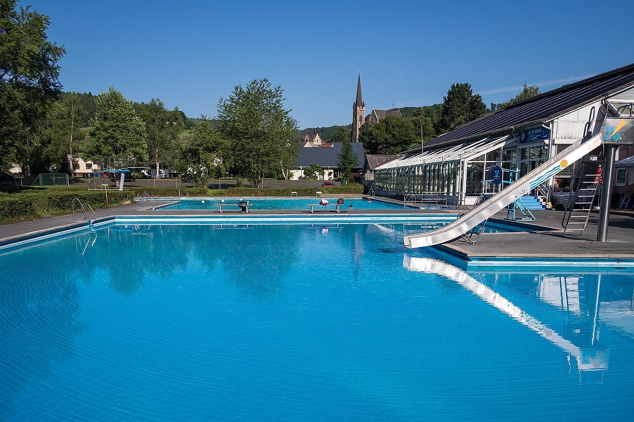 Im Freibad werden den Gästen ein Schwimmerbecken mit Sprunganlage, ein Nichtschwimmerbecken mit Rutsche und dazu ein Kleinkinder-Erlebnisbecken mit Schiffchenkanal, Rutsche, Sprudelfels und vielen Attraktionen mehr geboten.