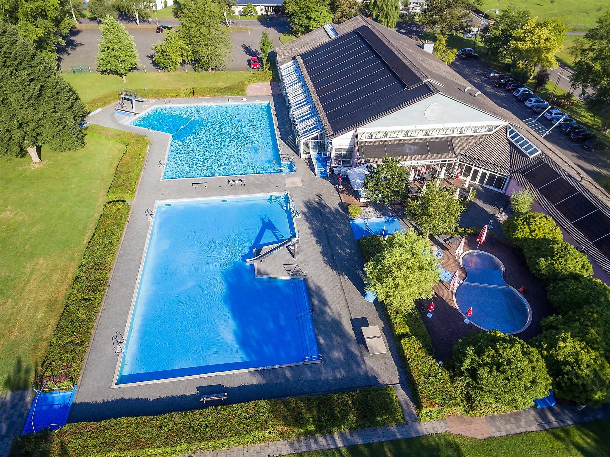 Alle Außenbecken werden über eine Solaranlage beheizt.