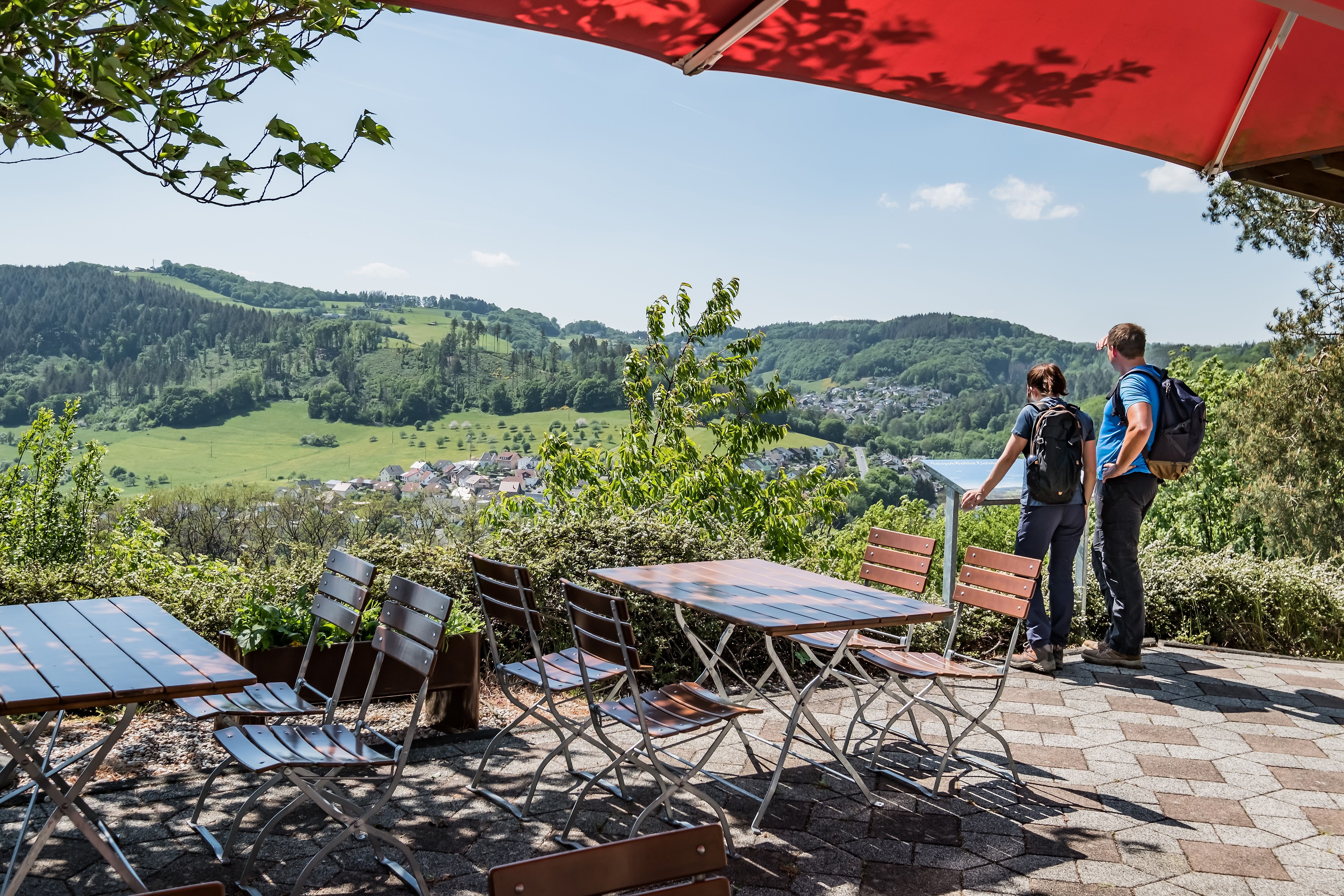 Nach Anmeldung unter 02638/813050 freut sich das Restaurant Klosterbergterrassen, dich mit warmem Essen und Trinken sowie einem tollen Ausblick zu verwöhnen.