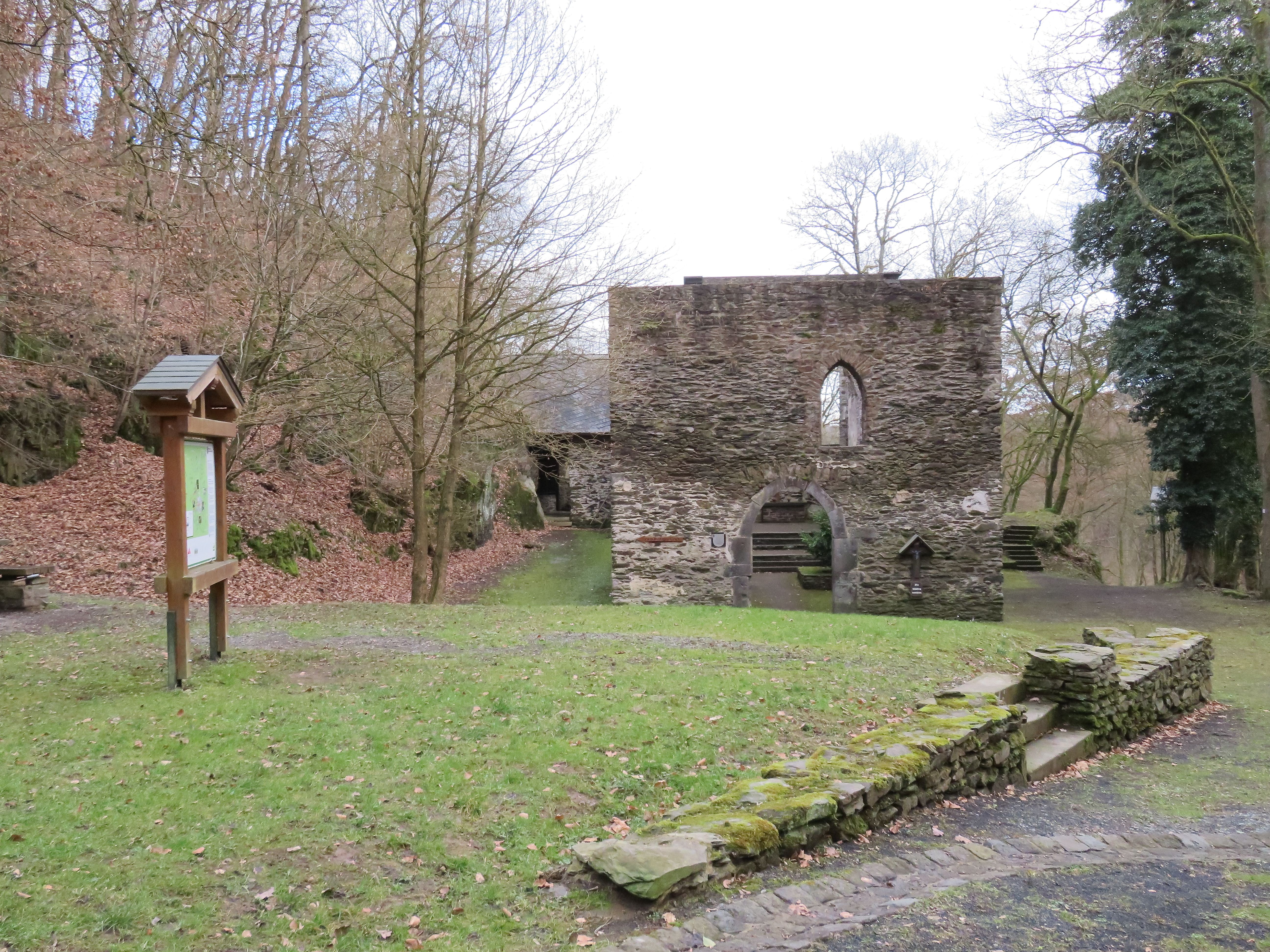 Besichtigung der Kirchenruine Hausenborn. Vom Rheinsteig gibt es immer wieder schöne Ausblicke ins Rheintal bis in die Eifel.