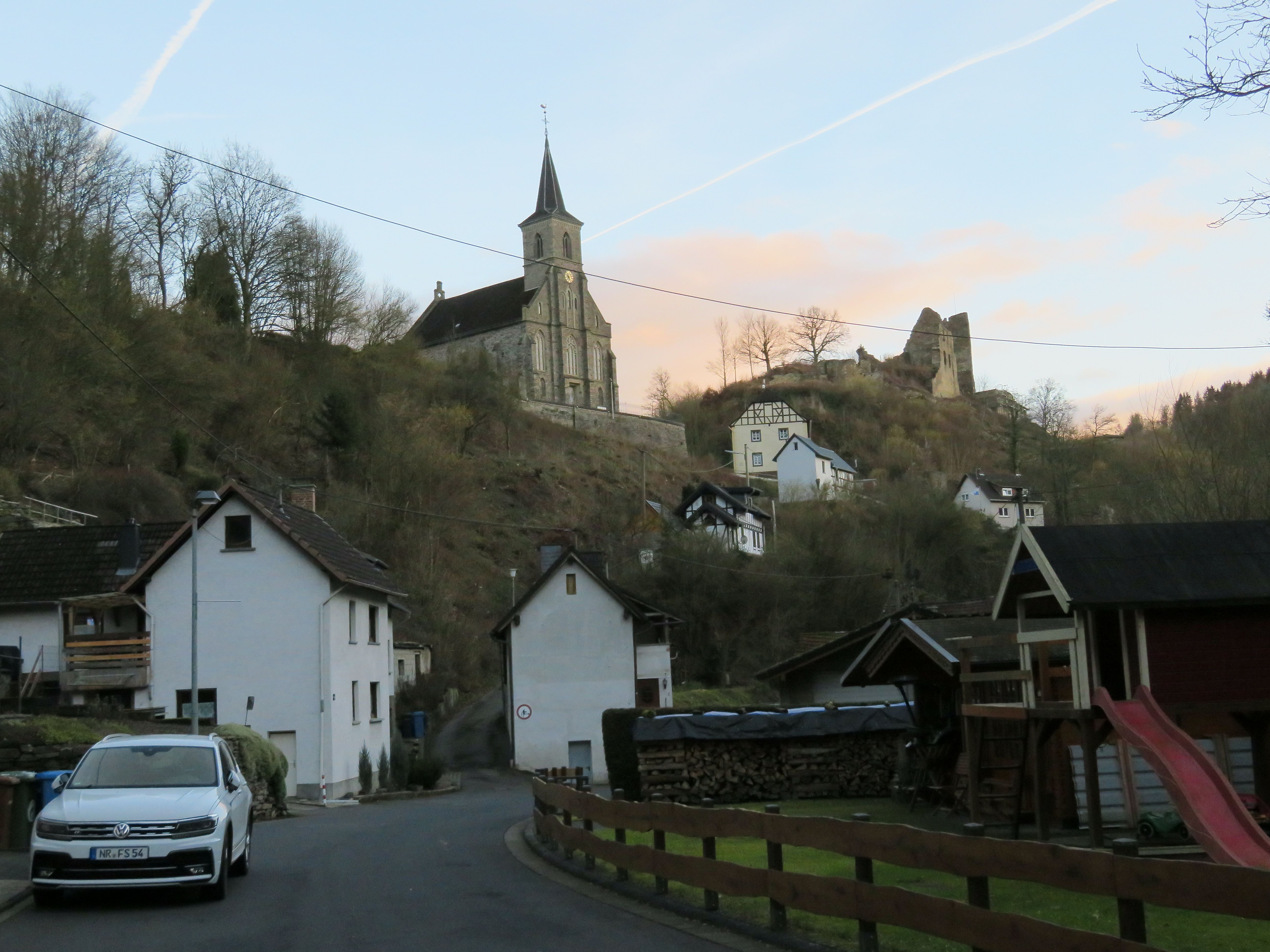 Die Route beginnt in Isenburg am Parkplatz neben dem Dorfgemeinschaftshaus. Von dort entlang der Bundestraße bis Ortsausgang Richtung Bendorf. Ab hier rechts hoch auf einem schmalen Steig "WW-Tour Iserbachschleife" bis zur Kirchenruine Isenburg.