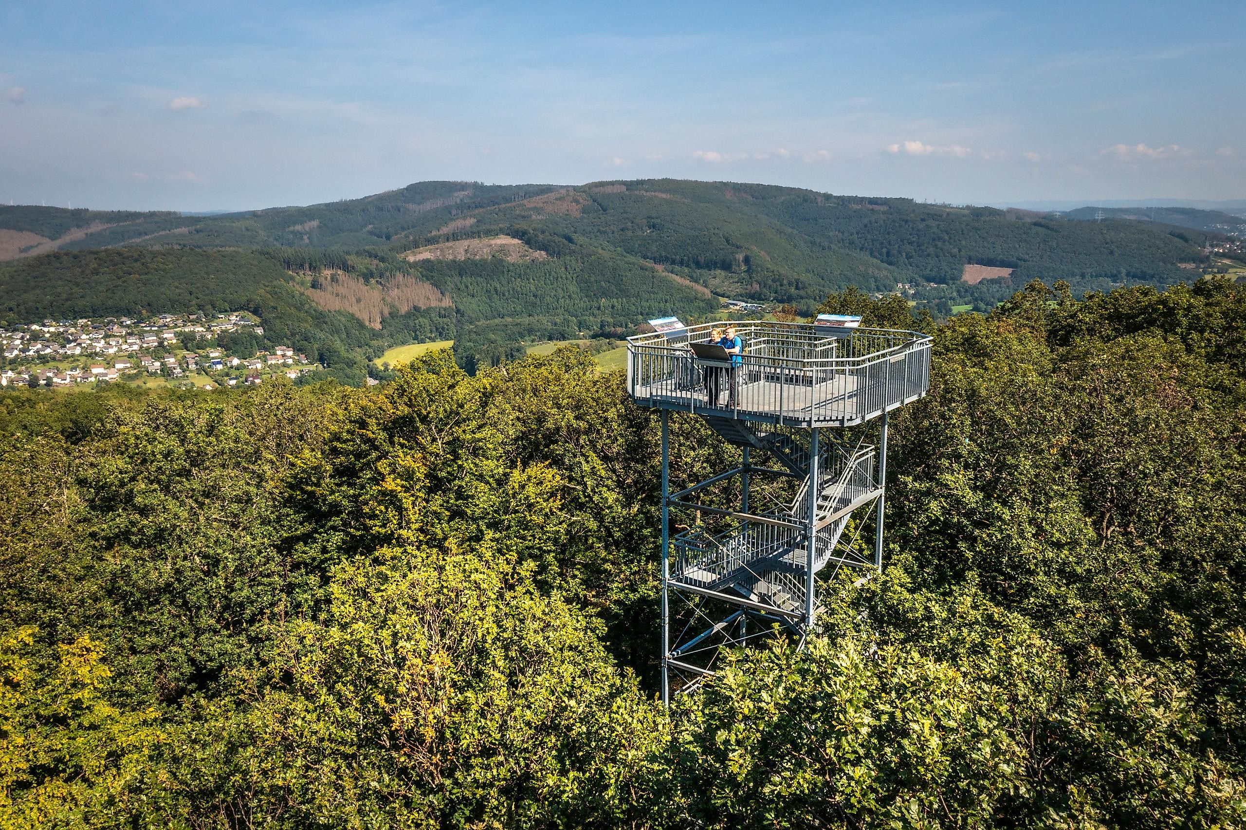 The popular and about 19 m high Ottoturm above the town of Kirchen (Sieg) in the Druiden.Hexen.Siegerland was built twice, once in 1911 and again completely new nearly 100 years later. Here, from the height of the Kahlberg, we enjoy the beautiful "panoramic view" into the Siegtal, towards the Freusburg and up to the heights of the Westerwald. Numerous hiking trails, such as the Druidensteig, Natursteig Sieg, Ottoturm and Druidenweg, lead directly past the tower.