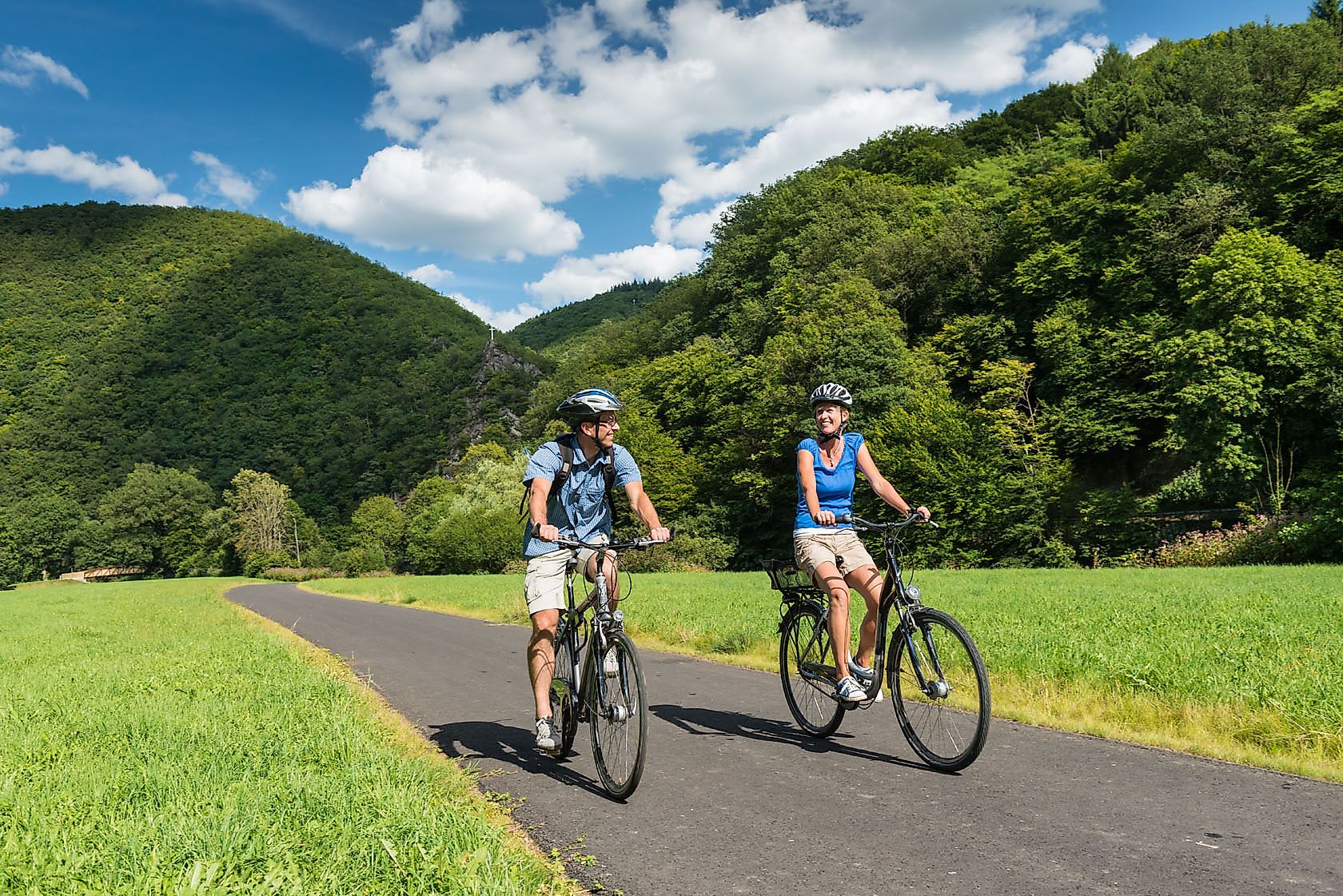 For bags and backpacks on a bike ride, not only the back offers space – the equipment weight should ideally be distributed over several parts of the body and bike. Wind, rain, or sun can cause very different temperature sensations while cycling – a cold can be best avoided with professional cycling clothing. On a multi-day route, you should always have appropriate change clothes at hand to be prepared for any eventuality. Besides other important equipment, necessary tools and repair utensils should not be forgotten. At high speeds, you can quickly take a wrong turn on a bike ride: orientation is provided by traditional and modern aids like a bike map or a GPS device. Always carry a small emergency kit as well.