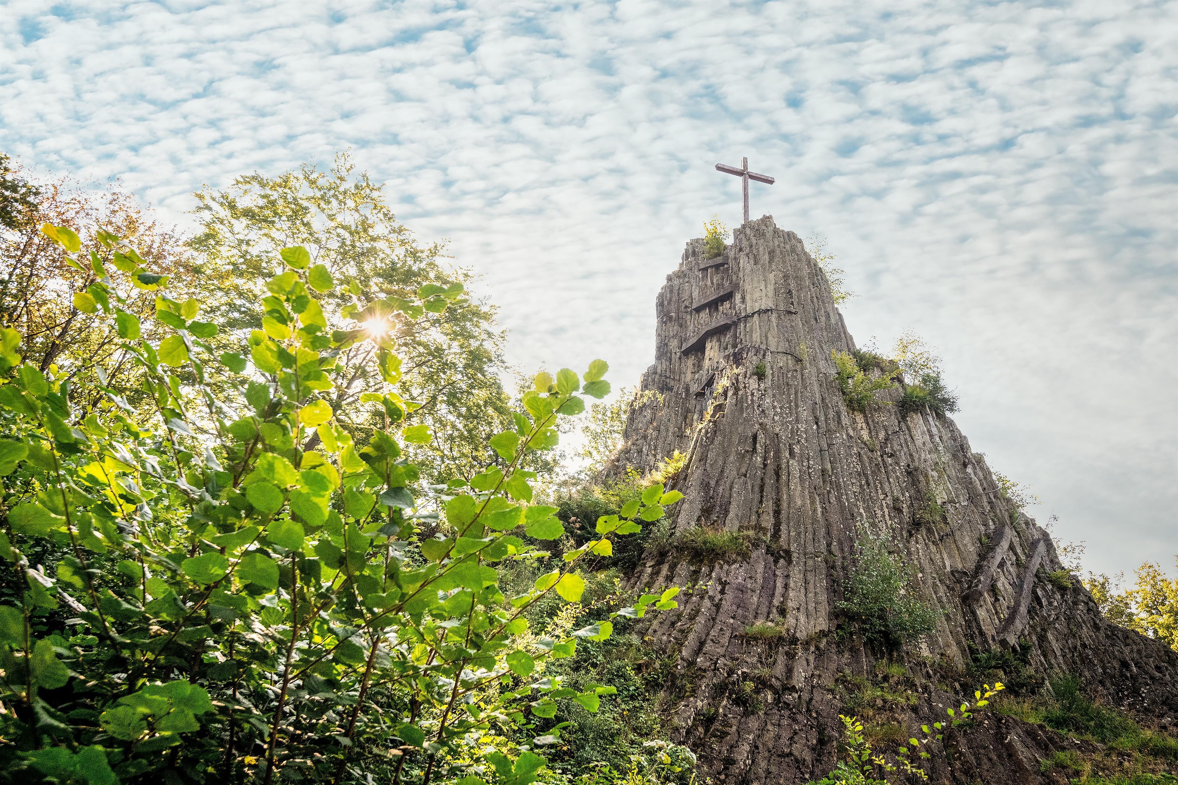 The 1 to 20 million years old namesake of this quality hiking trail, the legendary Druidenstein (National Geotope), welcomes you on this second stage in its very powerful form and represents the "geological highlight" of the hike as a natural monument. From Kirchen station (now Restaurant Casa), the hiking route in the Druiden.Hexen.SiegerLand of the Verbandsgemeinde Kirchen (Sieg) initially leads to Kahlberg with a unique view from the Ottoturm (GeoBlick) into the Sieg valley and to the Westerwald. Next to the Freusburger Mill, you experience an artistically designed historic cross path from the 1920s above Kirchen-Herkersdorf. At the stage destination Herdorf-Sassenroth, a visit to the Mining Museum of Altenkirchen district is absolutely recommended. It is a mining world for young and old. In the museum cellar, a complete mine was built according to the original sites in the region.