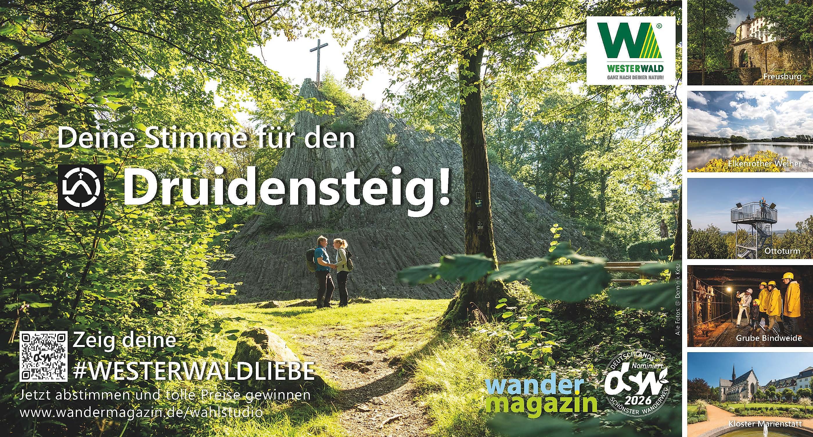 A KOMPASS hiking map North including the Druidensteig is available via the Westerwald-Shop.
