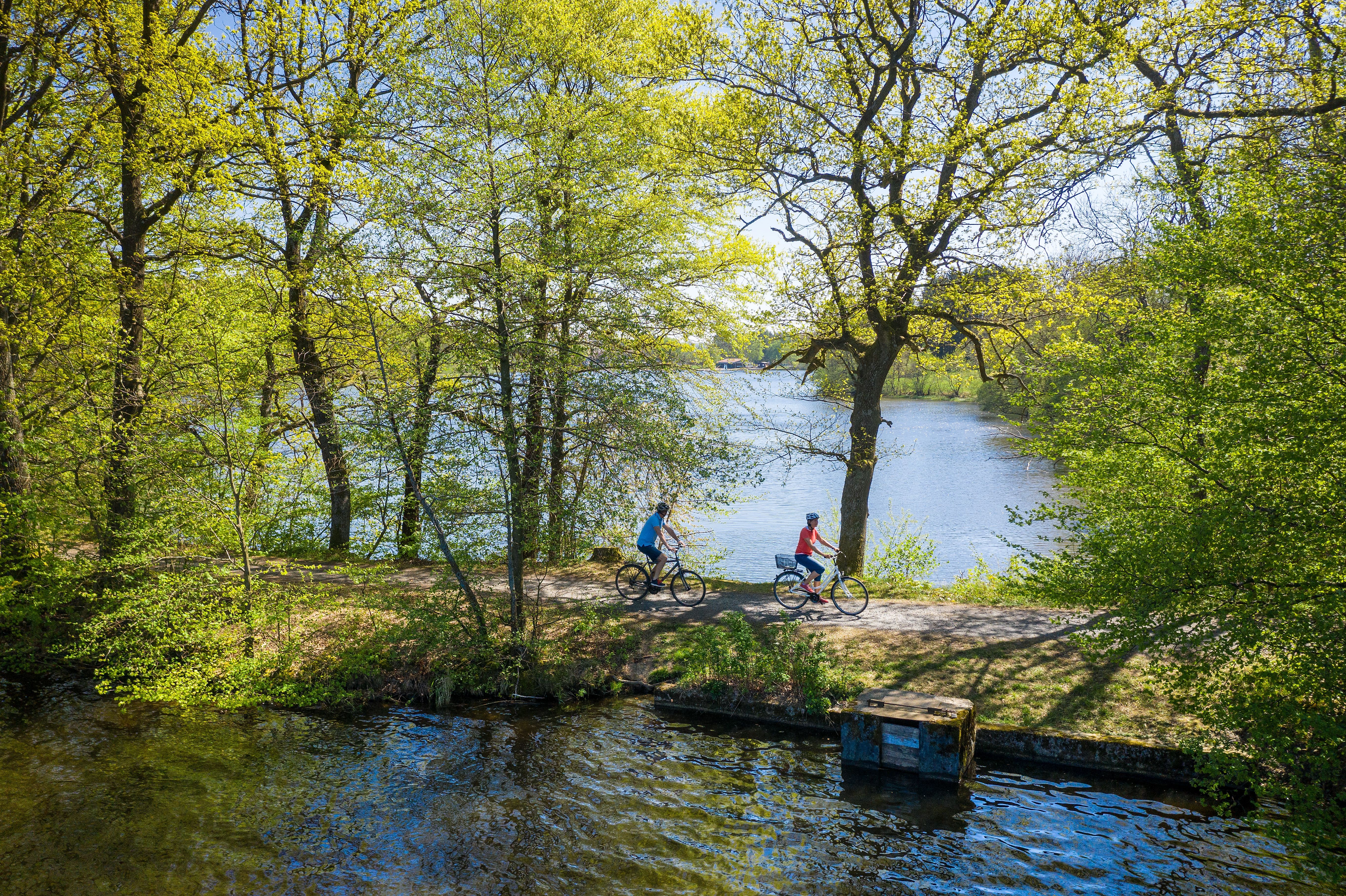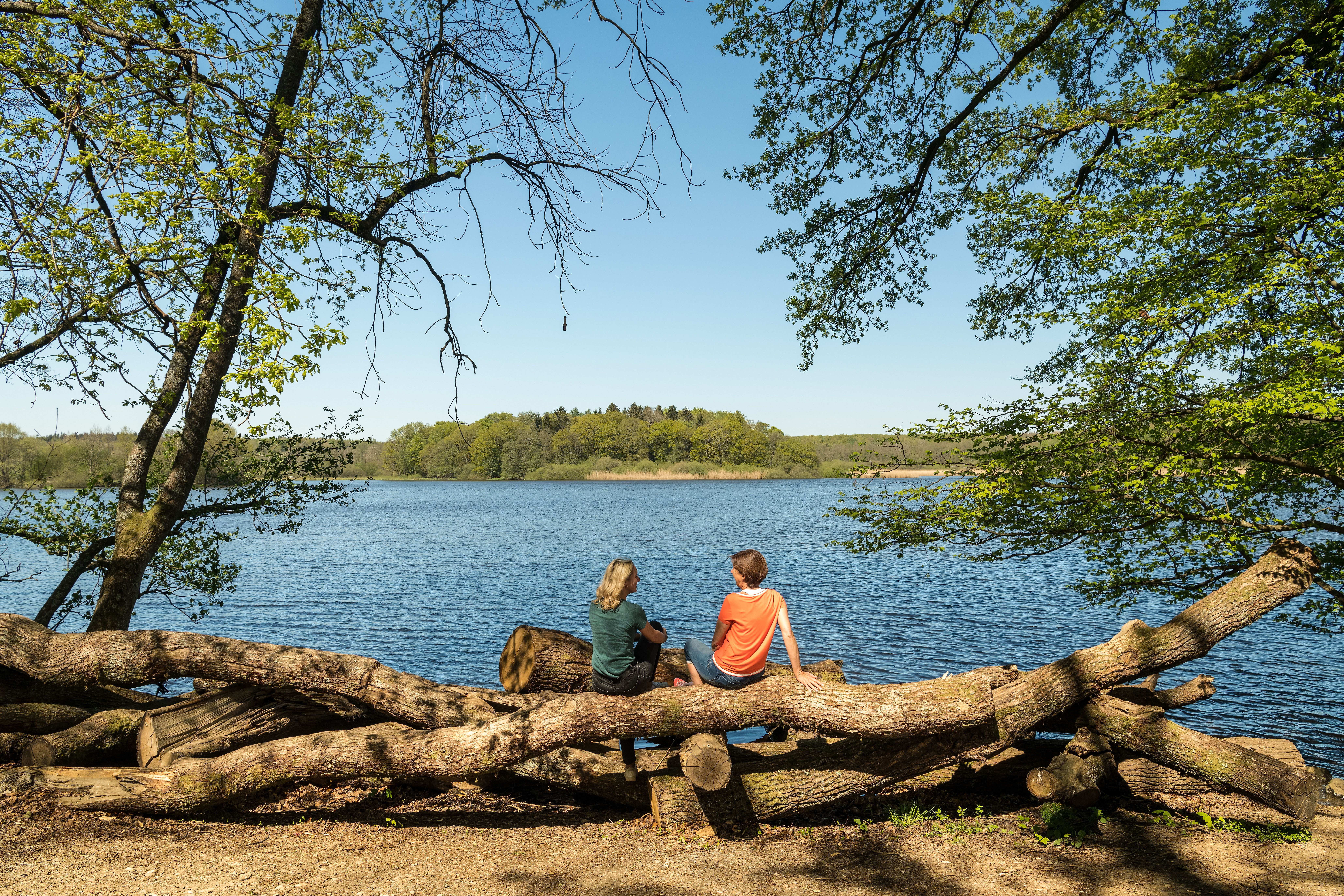 At the start of our route, we let our eyes wander over the gentle blue of the Dreifelder Weiher, the largest pond of the Westerwald lake district. Past the Haidenweiher, the path leads us through the small village of Steinen. Soon we ride through a small forest that separates the Postweiher and the Brinkenweiher. We leave the two bodies of water to our left and right and enjoy the scent of the forest through which the cycling loop will take us for the next kilometers. The forest playground offers a good opportunity to rest. We pass through Dreifelden and reach Steinebach an der Wied via Langenbaum. Here, we have the chance to see five sculptures of the Steinebach sculpture park, created by local artists. Passing fields and forests, we go past the Hoffmannsweiher and complete our little circuit.