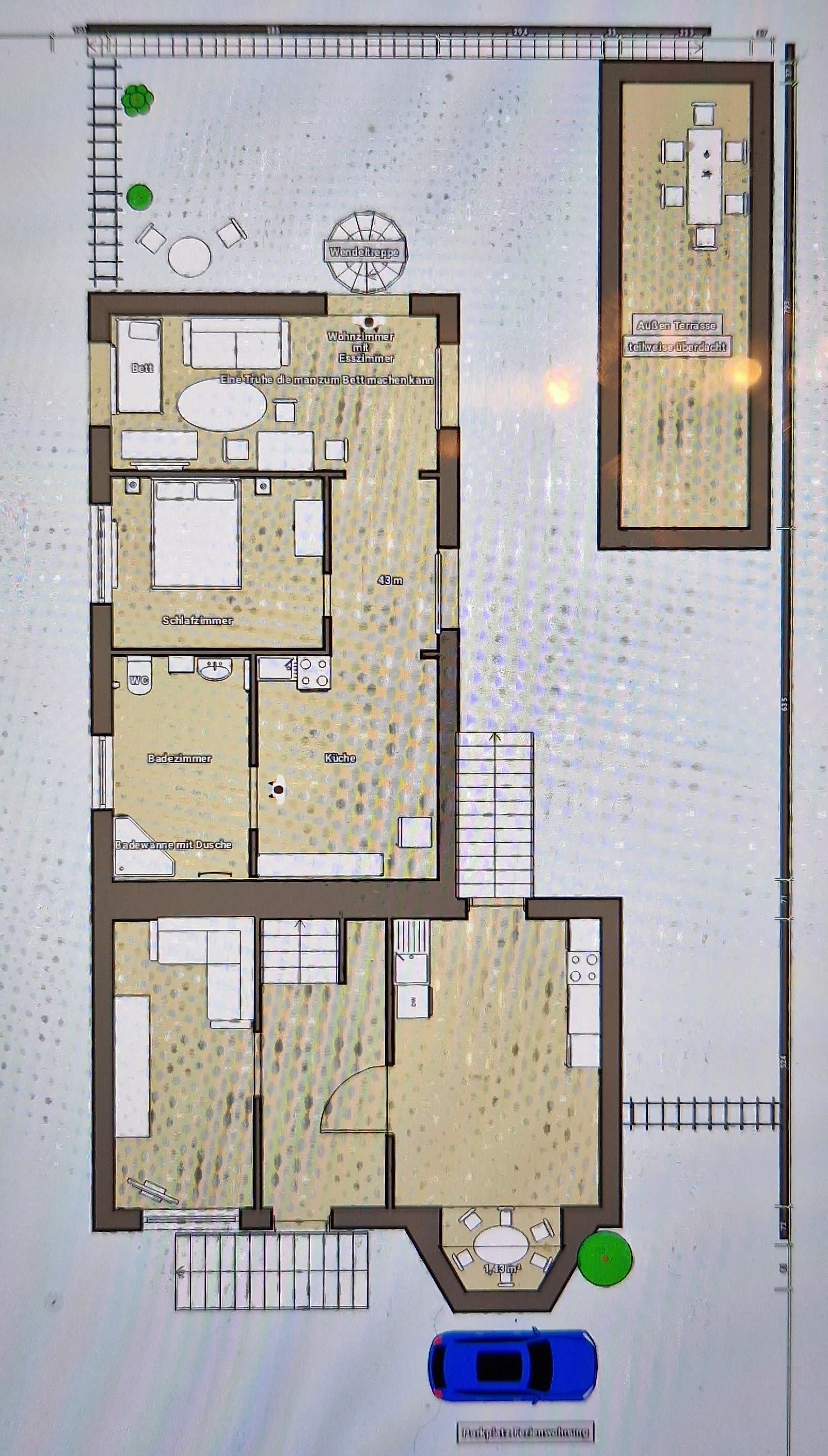 The cozy holiday apartment is located right by the Holzbach Gorge and offers ideal access to the hiking trails of the WällerLand. The apartment is on the 1st floor and is accessible via a spiral staircase. It is fully equipped and features a bathroom with a shower bathtub, a double bedroom, a living room with a bed chest, and a kitchenette.