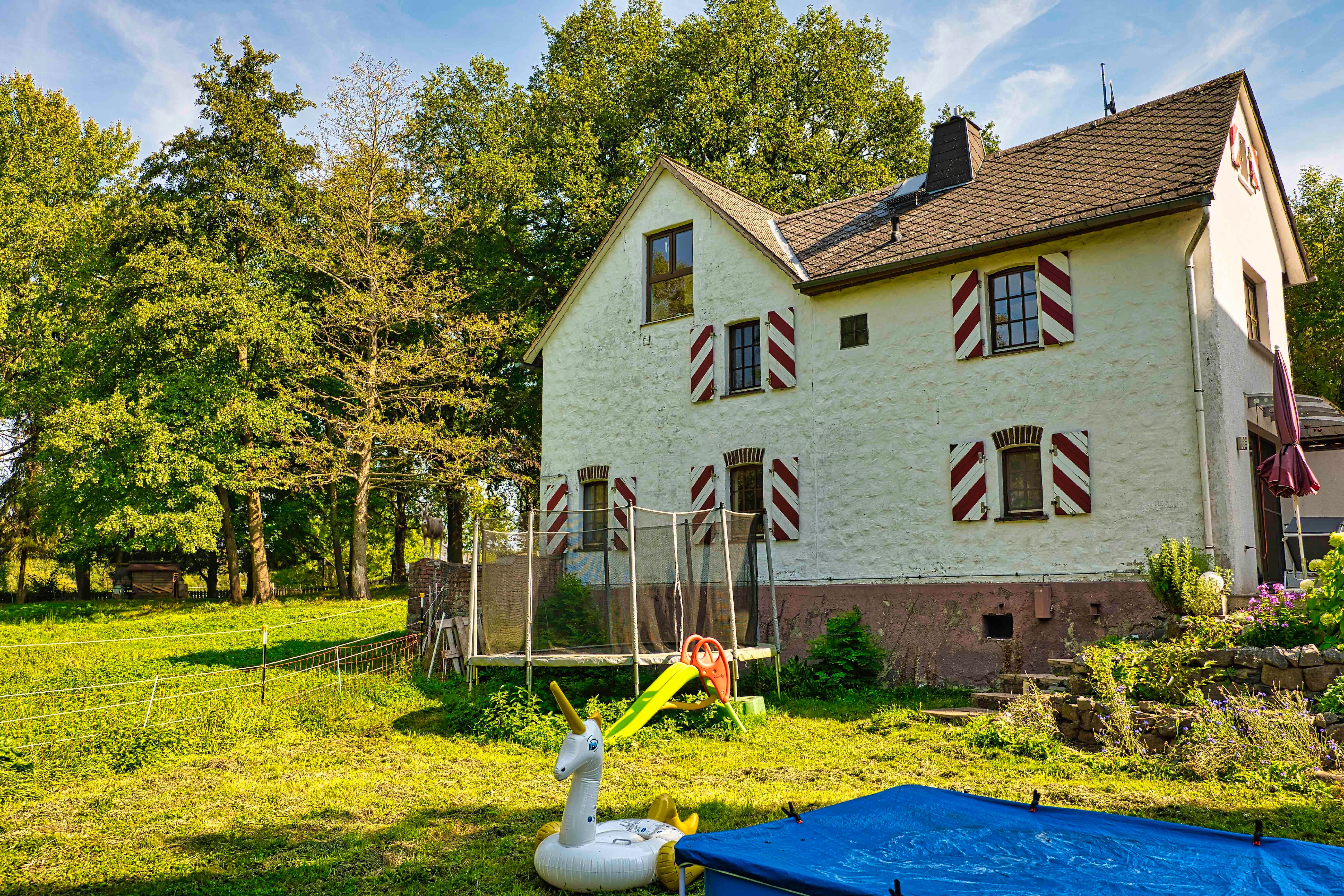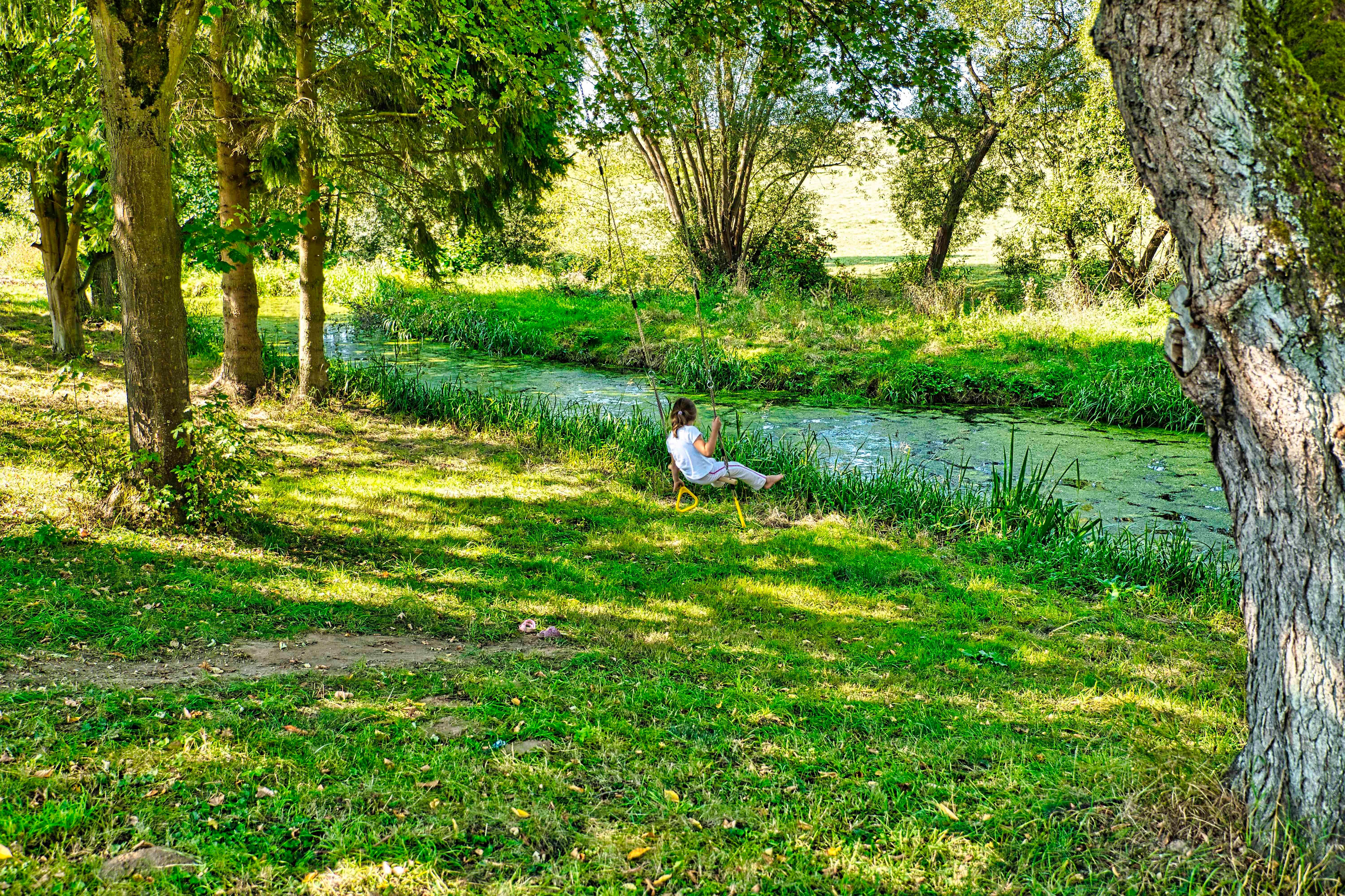 Parking spaces are available directly next to the apartment. The use of the large trampoline, a rowing boat for the mill pond, and the long tree swing is, of course, free of charge.