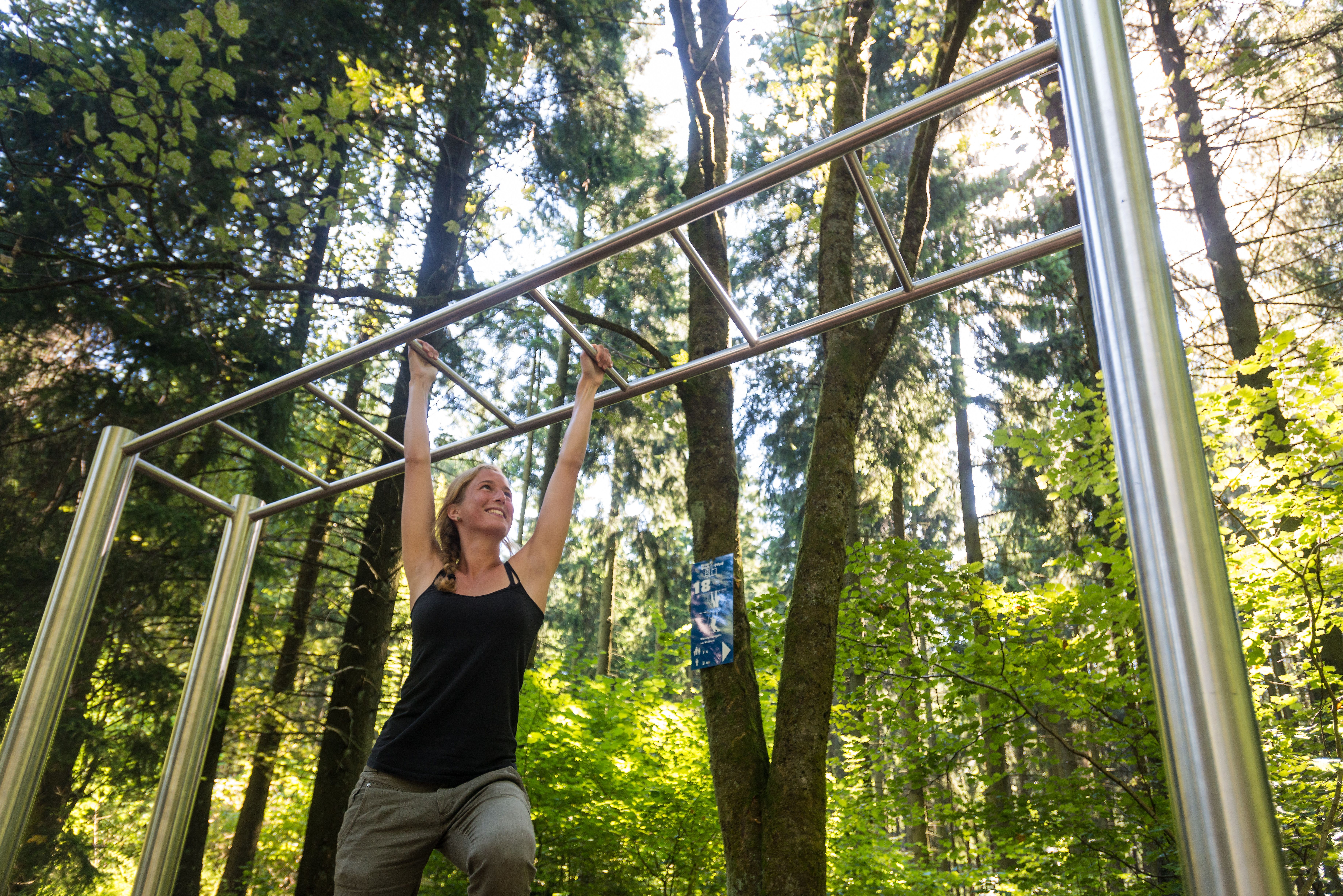 The Trim-Dich-Pfad, also known as Vita Parcours, is a free sports course that enables comprehensive training for endurance, strength, and fitness. The approximately 3 km long circular route winds through the wildlife park and is equipped with a total of 20 stations. Every 200 to 300 meters, you will find a new station with a specific athletic task. At each station, there is a board with detailed exercise instructions and useful information. The starting point is at the adventure playground in the wildlife park, offering a perfect combination of fitness and nature experience. The path is ideal for people of all ages and fitness levels to engage in sporting activities outdoors and have fun. Whether alone, with friends, or family – the Trim-Dich-Pfad is a great way to stay active while enjoying the beautiful surroundings of the wildlife park.