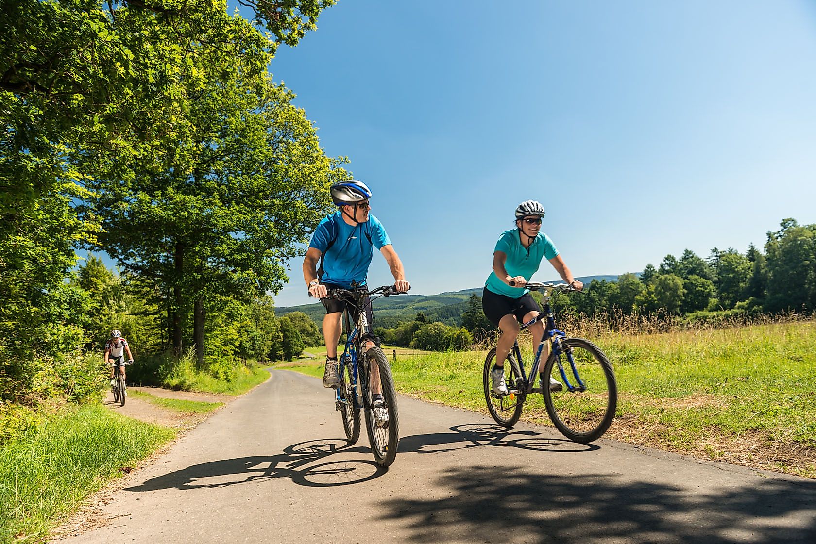For bags and backpacks, space on the back is not the only option during a bike ride – the weight of the equipment should preferably be distributed across several body and bike parts. Wind, rain, or sun can lead to very different temperature sensations on the bike – a cold can best be avoided with professional cycling clothing. On a multi-day trip, you should always have appropriate spare clothes on hand to be prepared for any eventuality. Besides other important equipment items, necessary tools and repair supplies should not be forgotten. At high speed, it is easy to take a wrong turn on a bike tour: Orientation aids such as a bike map or a GPS device are useful. You should always carry a small emergency kit with you.