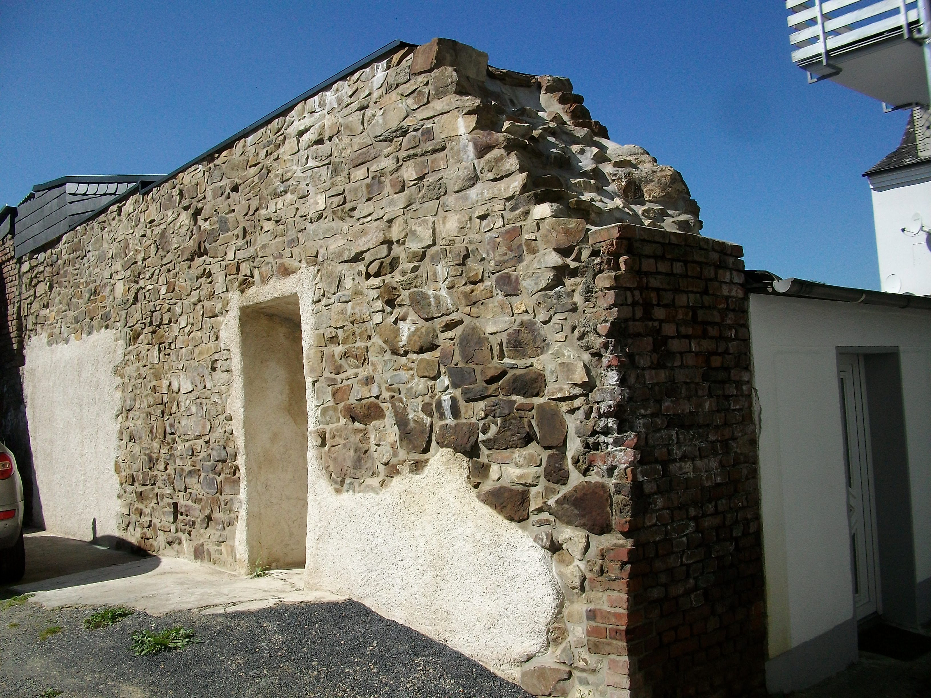 The market square was redesigned a few years ago; at the rear, there is a slate-covered building, probably the oldest house in town (1602). We now turn into Kirchstraße, cross the lovingly designed church square, and reach the remains of the old medieval town wall via the pedestrian crossing, which must have experienced a lot as a house, stable, or garage wall.